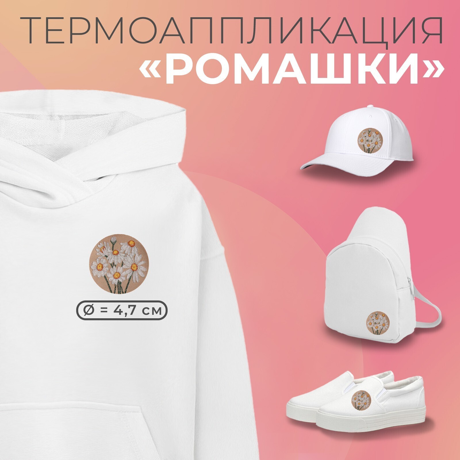 Термоаппликация «Ромашки», d = 4,7 см, цвет белый