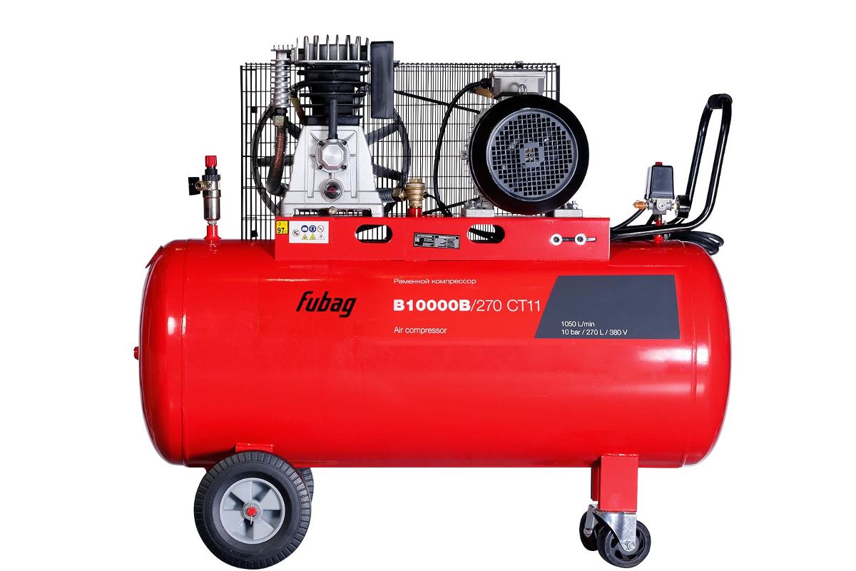 FUBAG B10000B/270 CT11 – профессиональный компрессор для использования в автомастерской, на производстве или стройке. Мощный двигатель на 7500 Вт перегоняет 1050 л воздуха в минуту. Совместим с профессиональными ресурсоёмкими пневмоинструментами – отбойными молотками, пневмодолотом, производительными краскопультами и т.д. Объёмный ресивер на 270 л позволяет работать продолжительное время даже при выключенном электричестве.