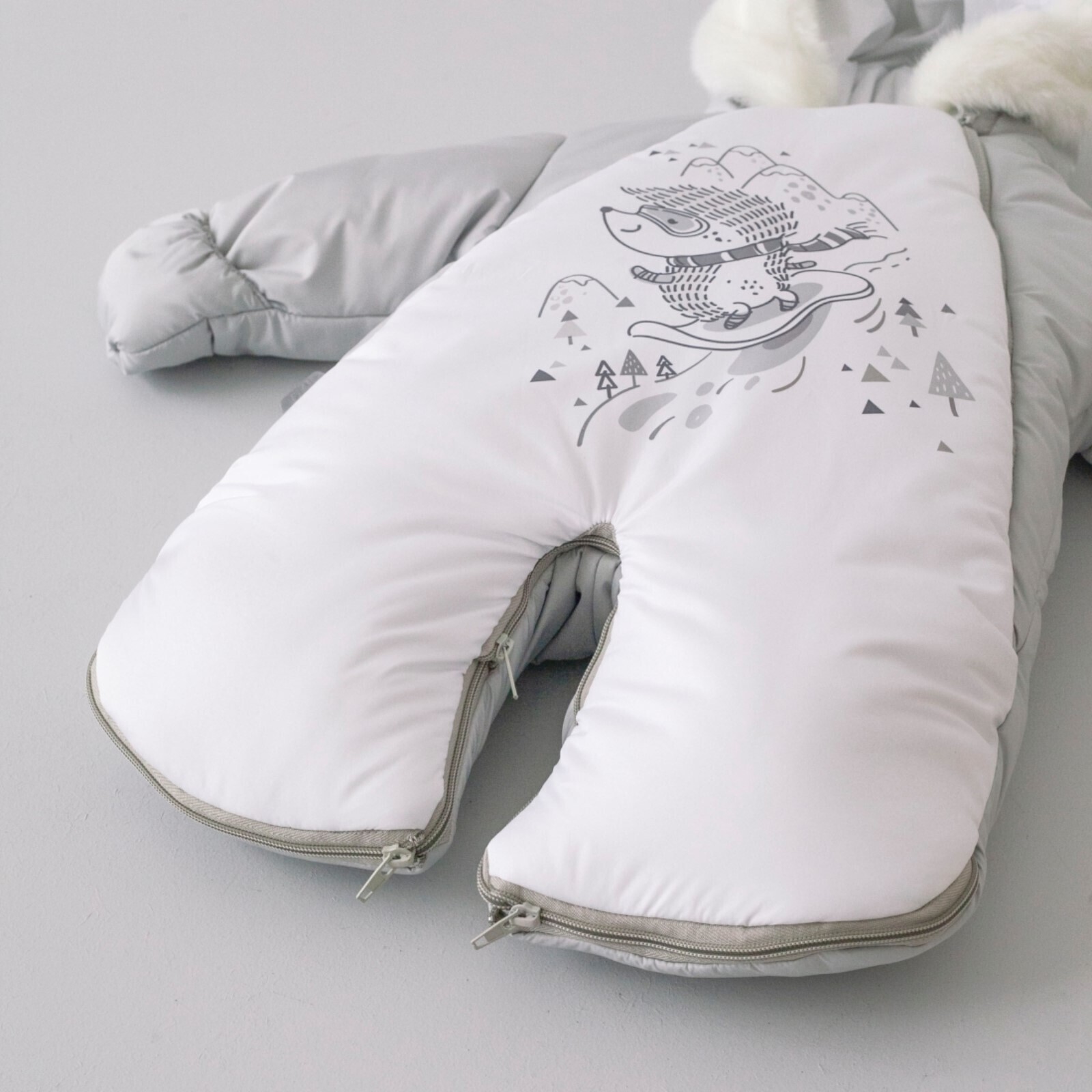 Комбинезон-трансформер «Ёжик на сноуборде» зимний, рост 68-80 см, цвет серый