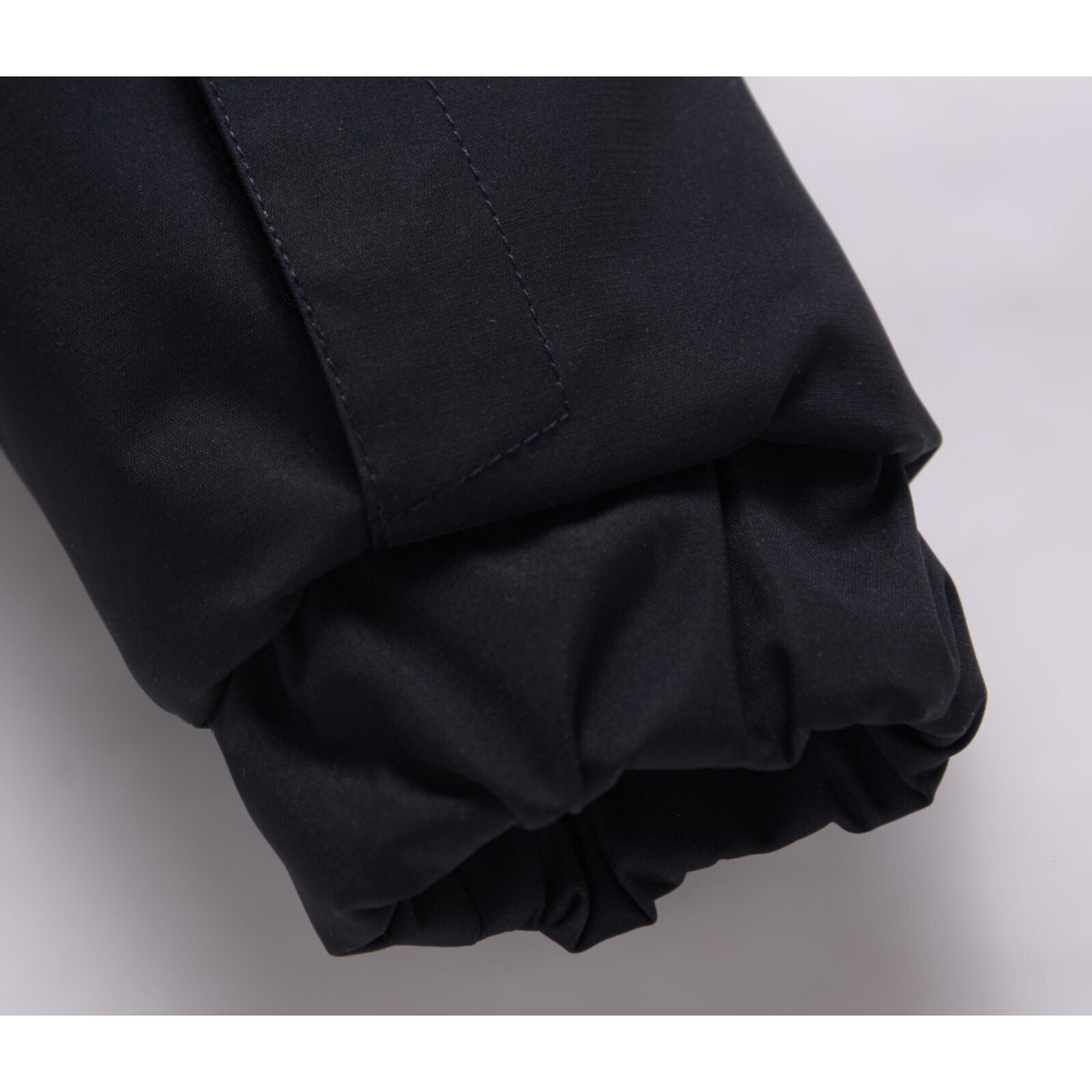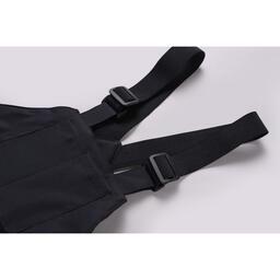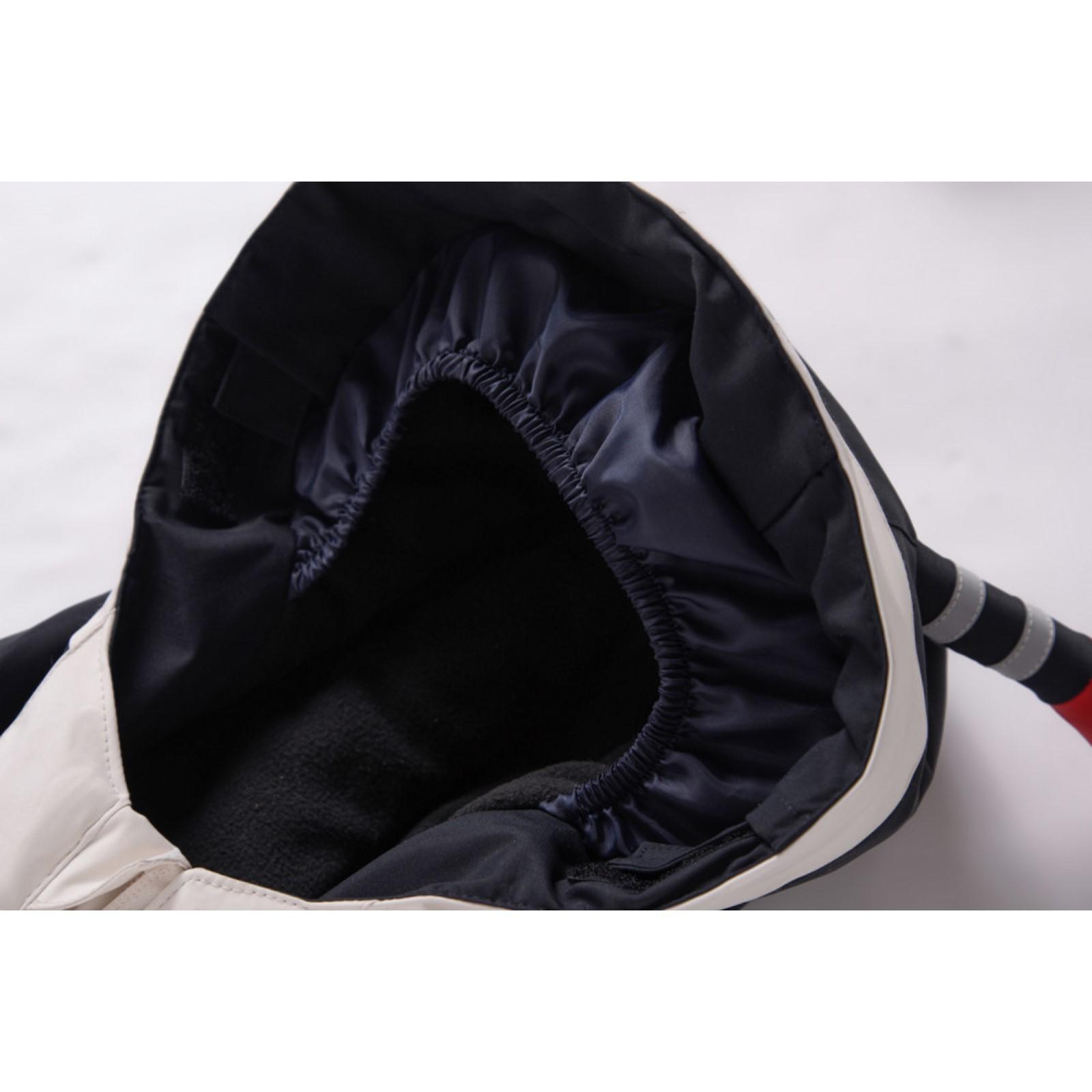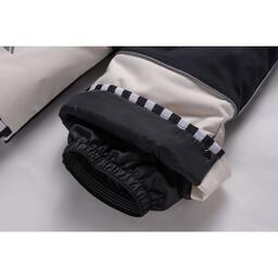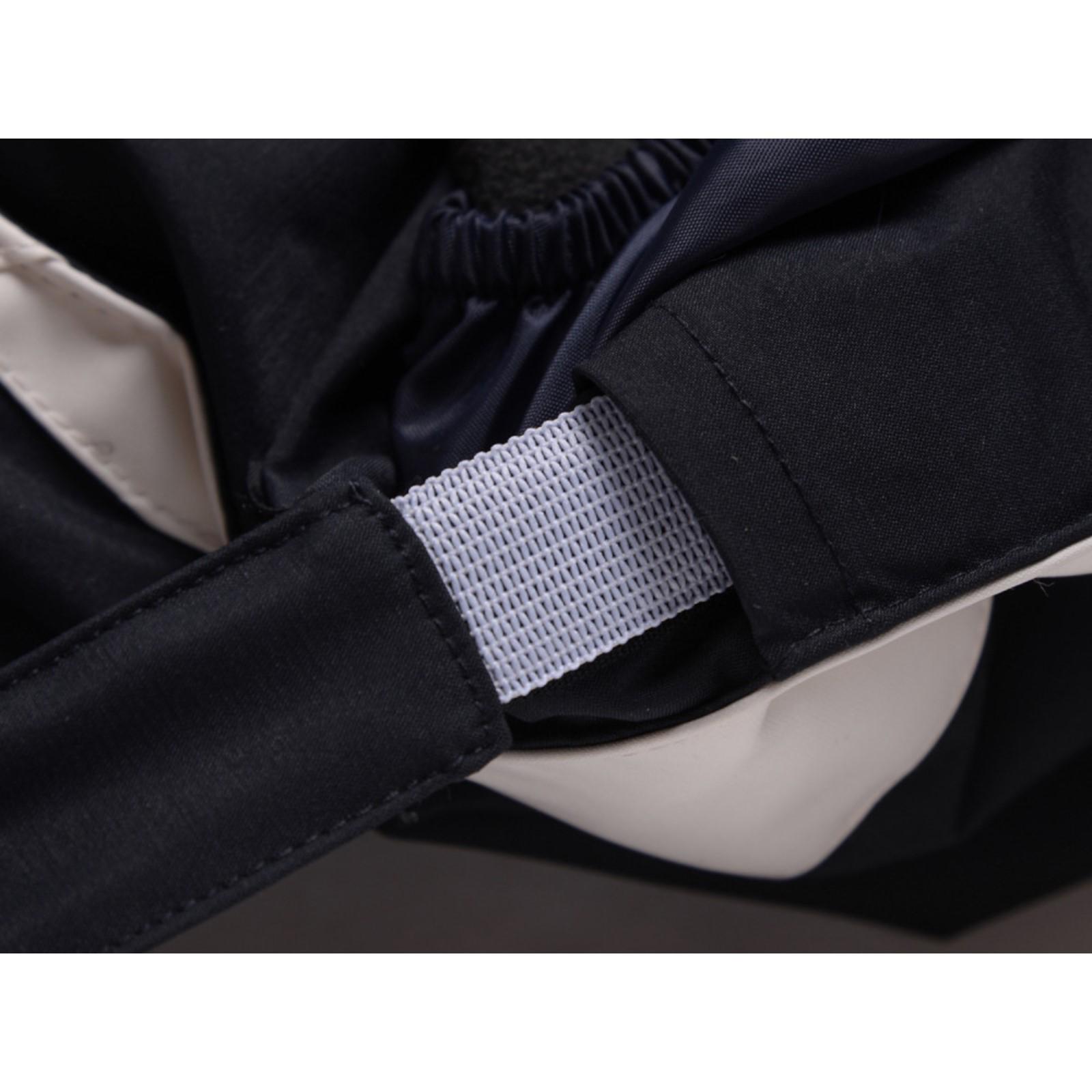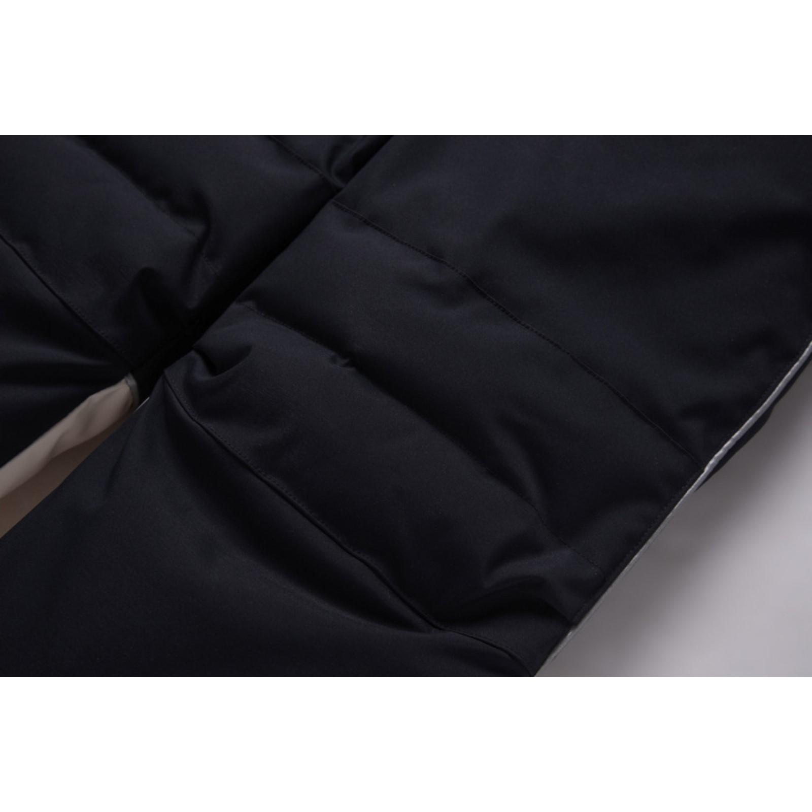 Брюки оснащены эластичными манжетами на резинке, штрипкой для надежной фиксации брюк, прорезными карманами на молнии, резинкой стяжкой по бокам, застёжкой на молнии и ветрозащитной планкой на липучке.