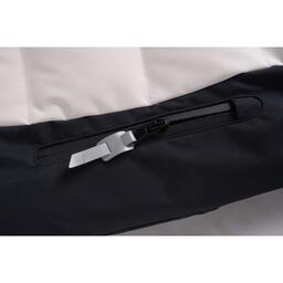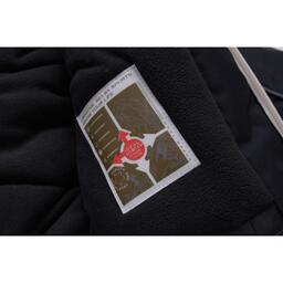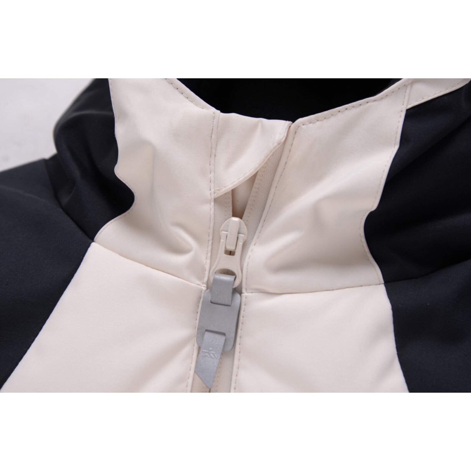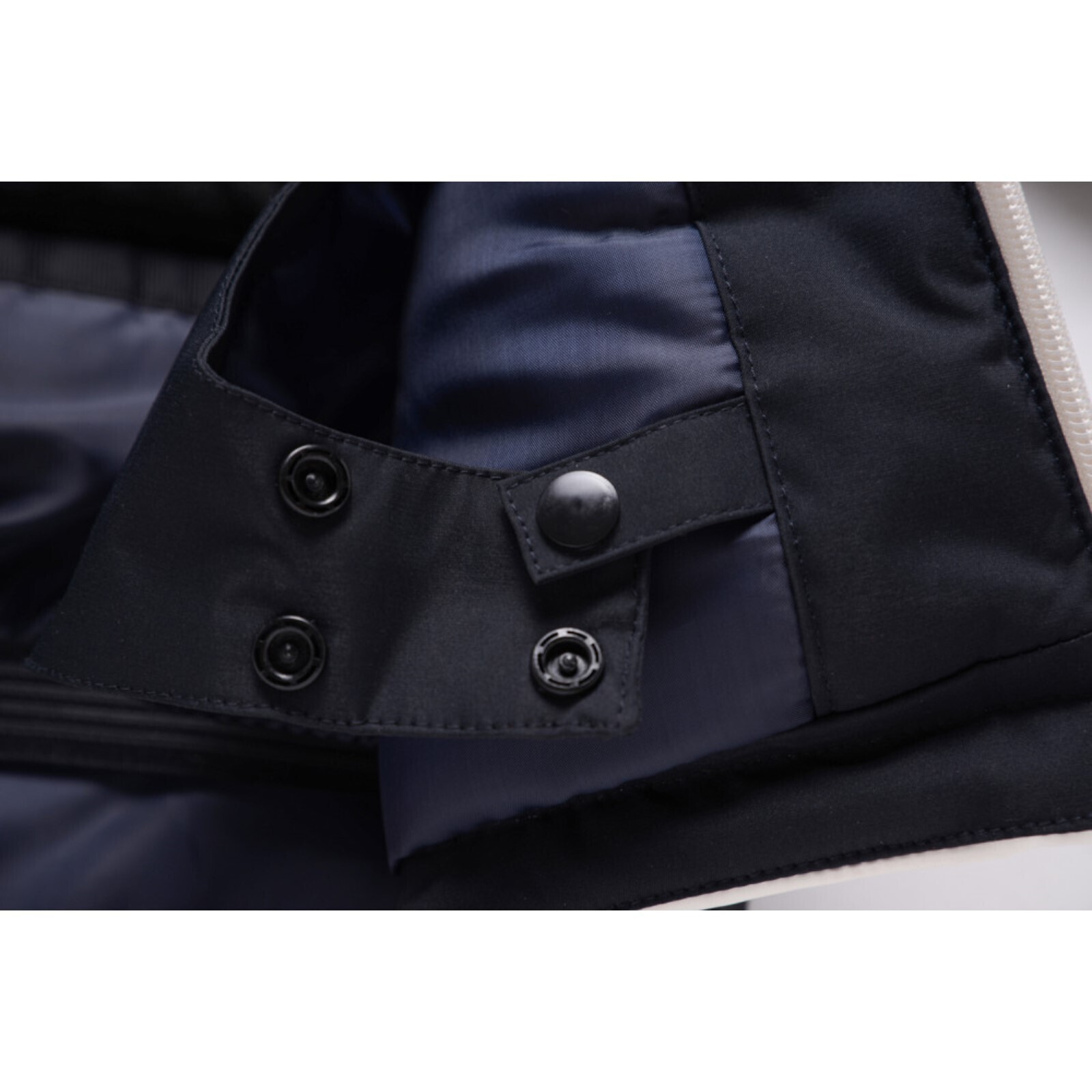 Куртка также имеет боковые карманы на молнии с ветрозащитной планкой и снегозащитную юбку на кнопках.