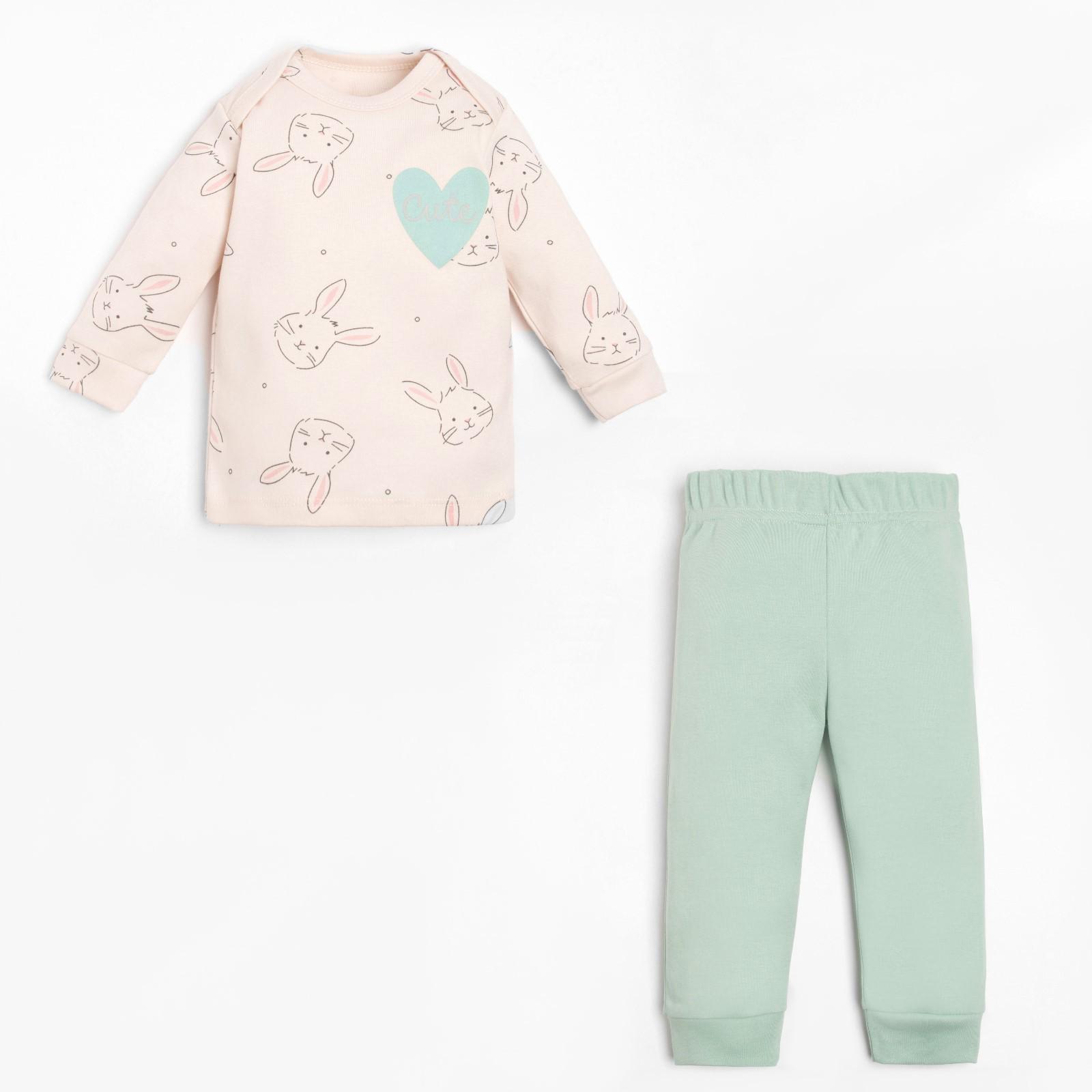 Комплект: джемпер и брюки Крошка Я «Зайчик», рост 68-74 см, цвет бежевый/оливковый