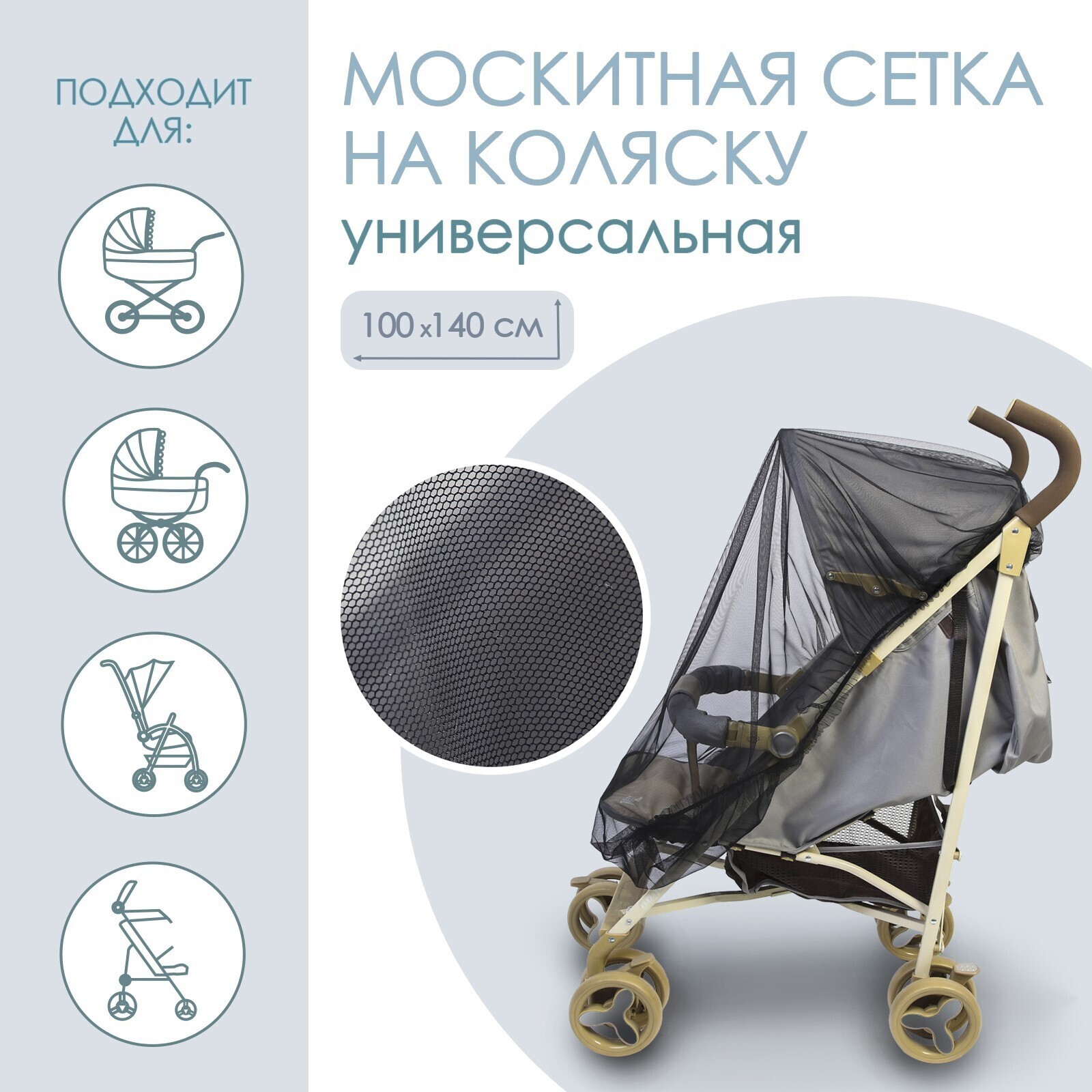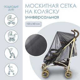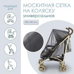 Универсальная москитная сетка на детскую коляску 100х140 см, цвет черный¶¶