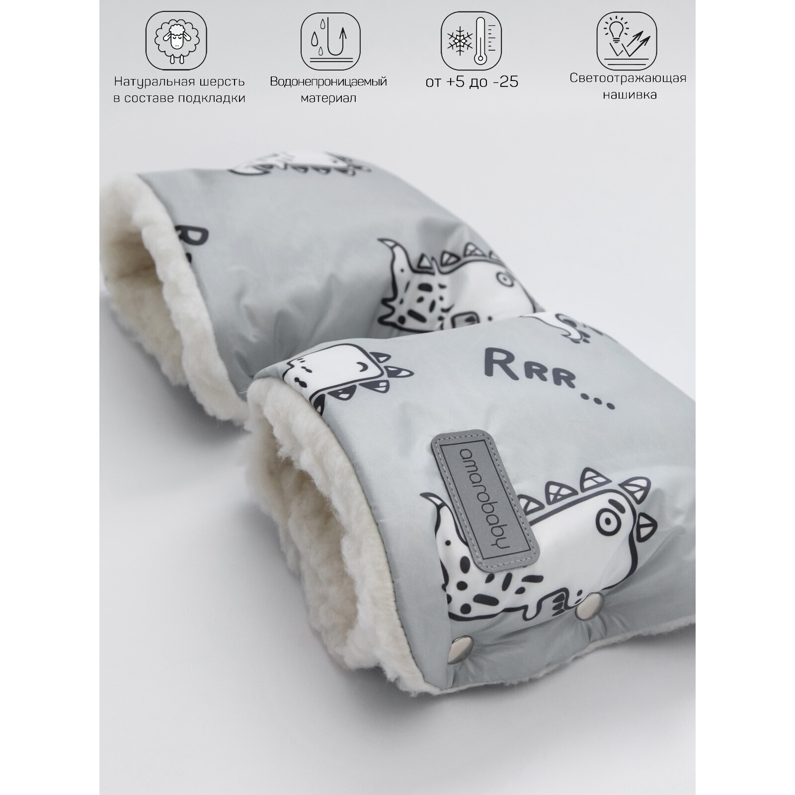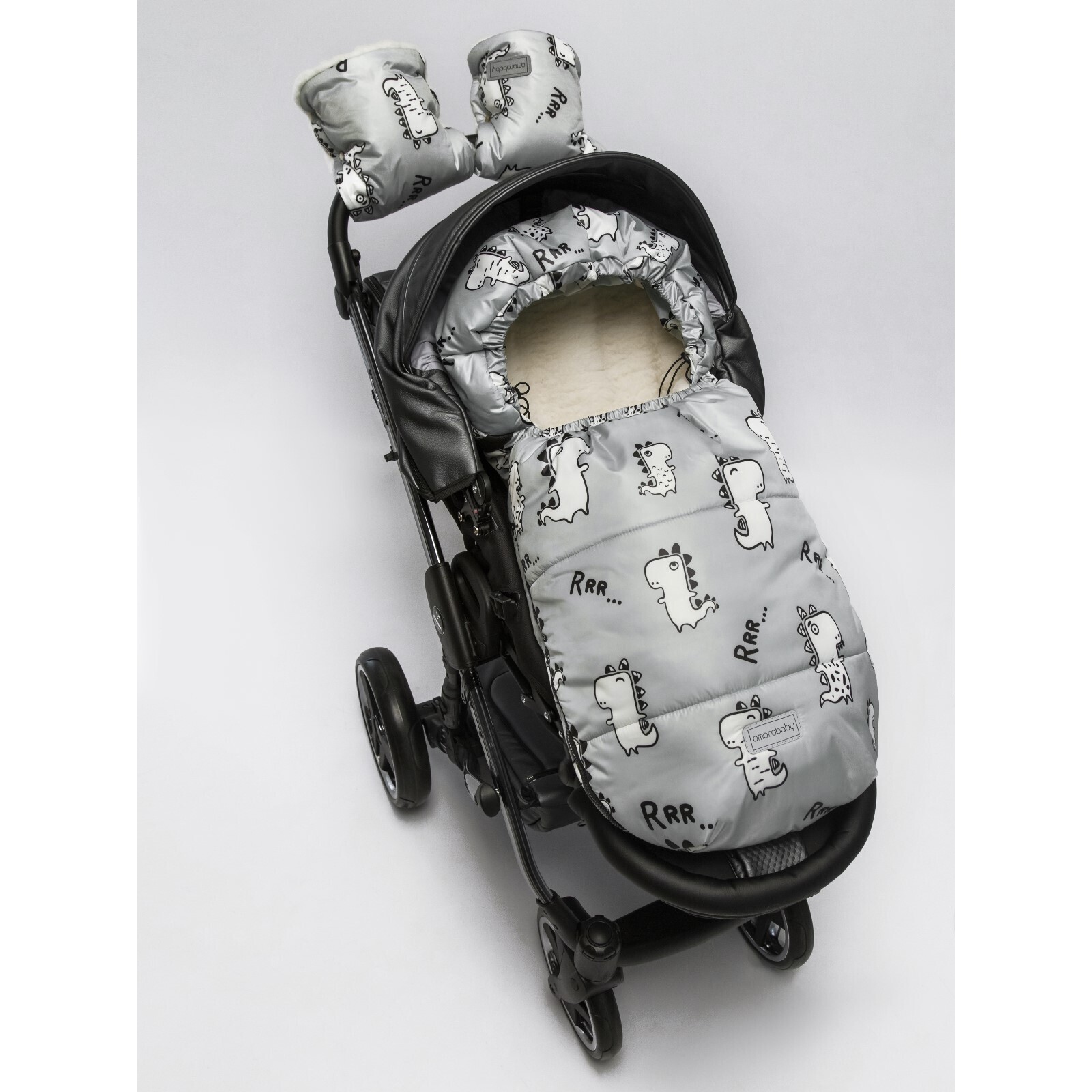 Муфты на ручку коляски Snowy Travel, цвет динозавры/серый