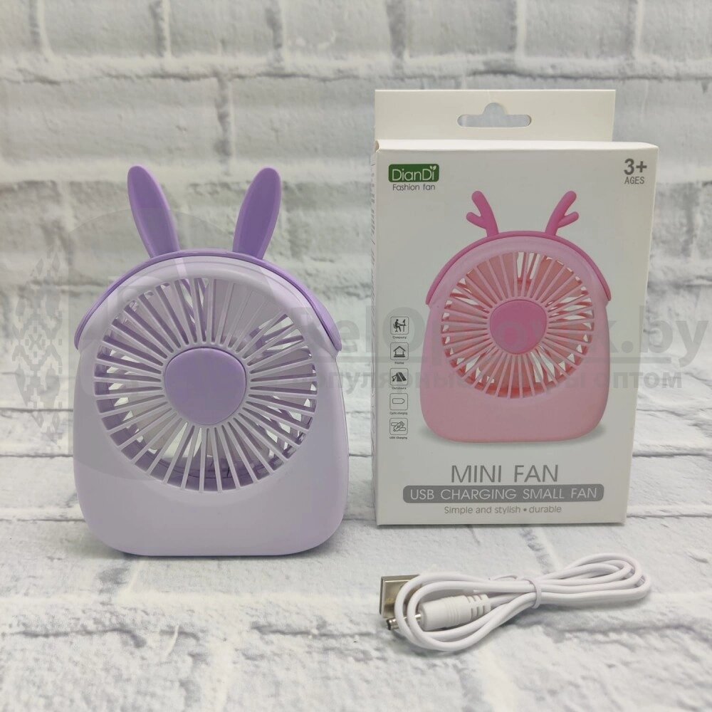 Портативный USB-вентилятор с Ушками Mini FAN SQ-2144/2 скорости обдува Фиолетовый