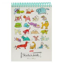 Блокнот-скетчбук А5, 60 листов на гребне "Прикольные животные", пластиковая обложка, блок 100 г/м²
