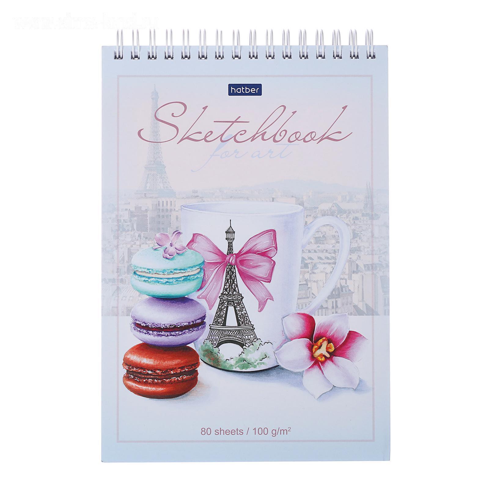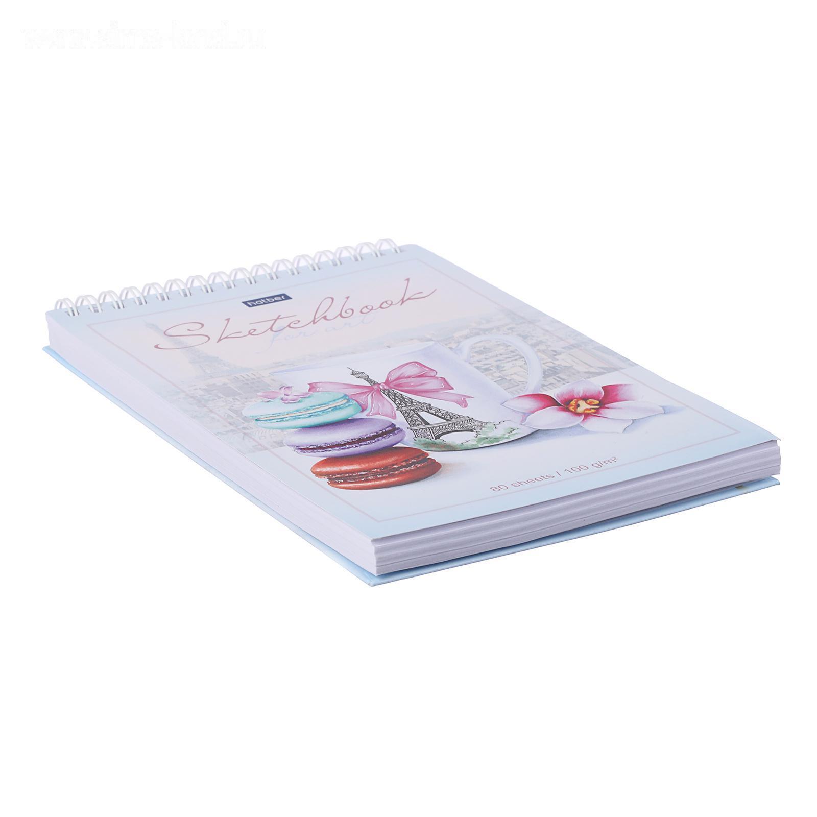 Скетчбук А5, 80 листов на гребне "Сладкий Париж", обложка мелованный картон, твёрдая подложка, блок 100 г/м2