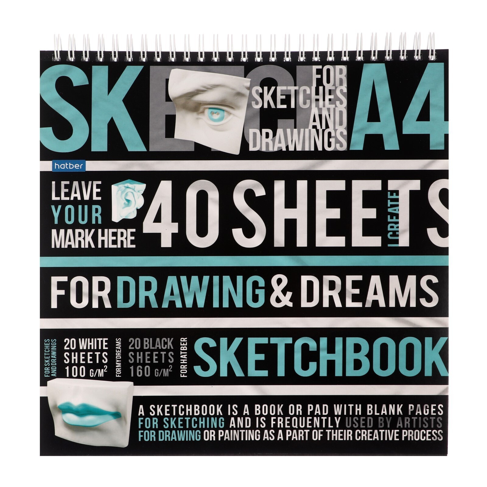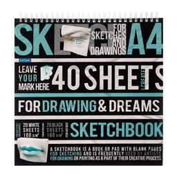 Скетчбук 240 х 240 мм, 40 листов чёрная бумага, 20 листов белая бумага, на гребне "Рисуй и мечтай", обложка мелованный картон, жёсткая подложка, блок 100/160 г/м²