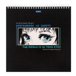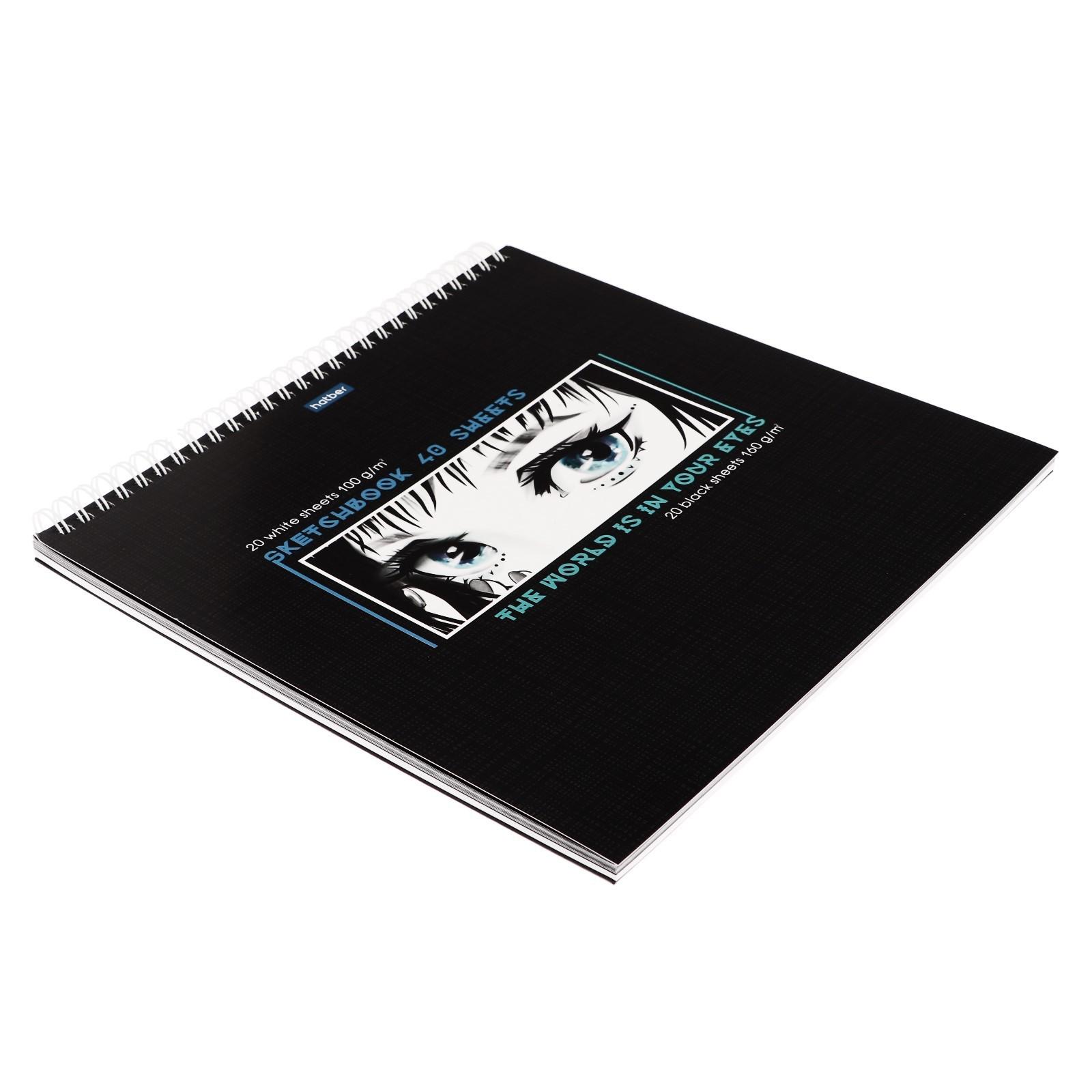Скетчбук 240 х 240 мм, 40 листов чёрная бумага, 20 листов белая бумага, на гребне "Мир в твоих глазах", обложка мелованный картон, жёсткая подложка, блок 100/160 г/м²