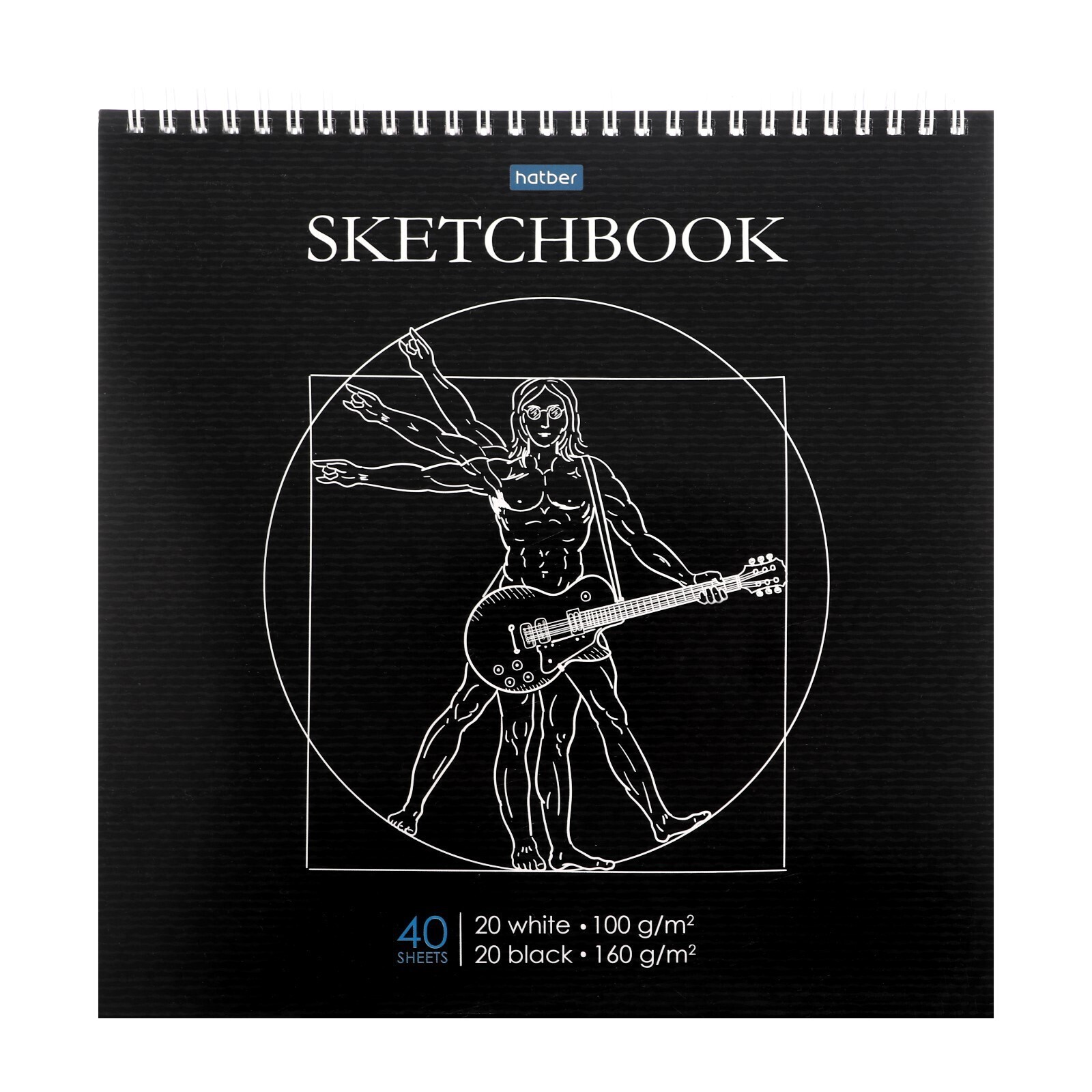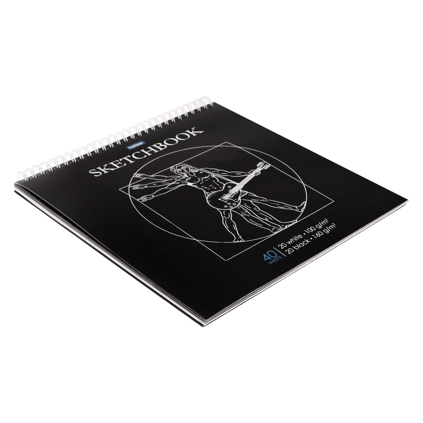 Скетчбук 240 х 240 мм, 40 листов чёрная бумага, 20 листов белая бумага, на гребне "Музыка Да Винчи", обложка мелованный картон, жёсткая подложка, блок 100/160 г/м²