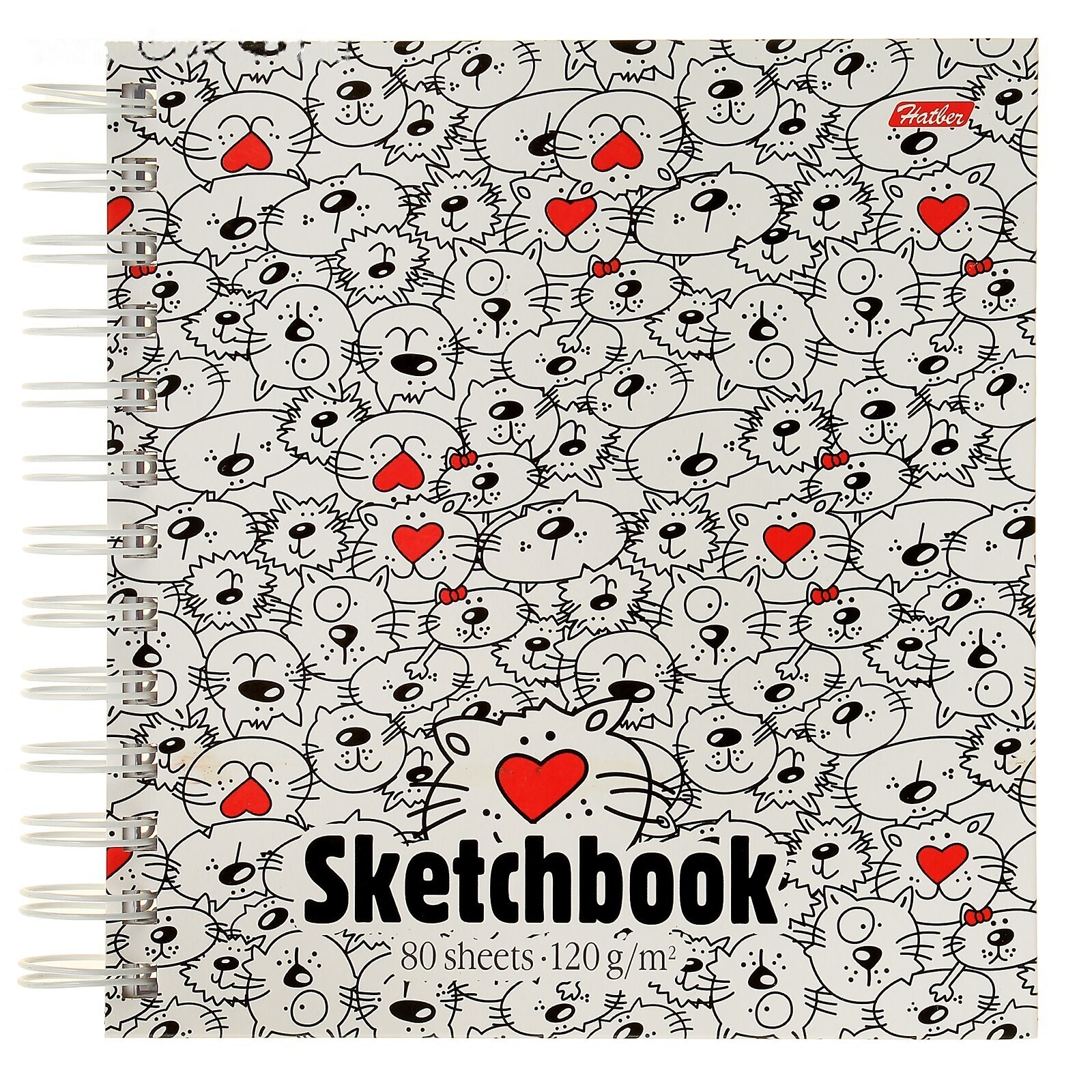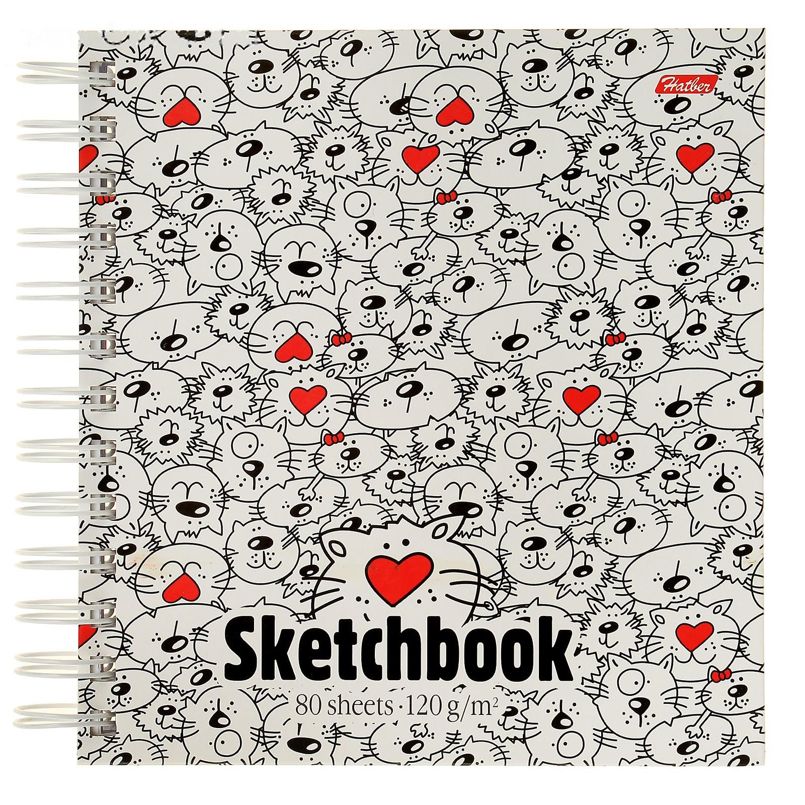 Тетрадь-скетчбук, А5, 80 листов, в клетку, на гребне, "Прикольные коты", твёрдая обложка, блок 120 г/м²