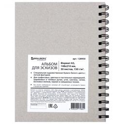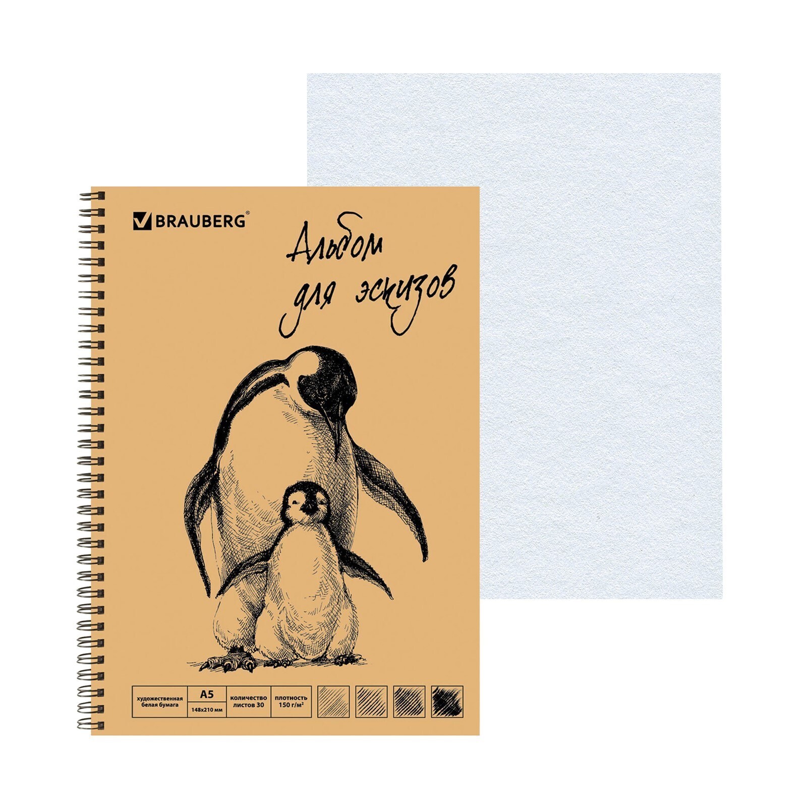 Альбом для эскизов А5, 30 листов на гребне, BRAUBERG, белая бумага, 150 г/м2