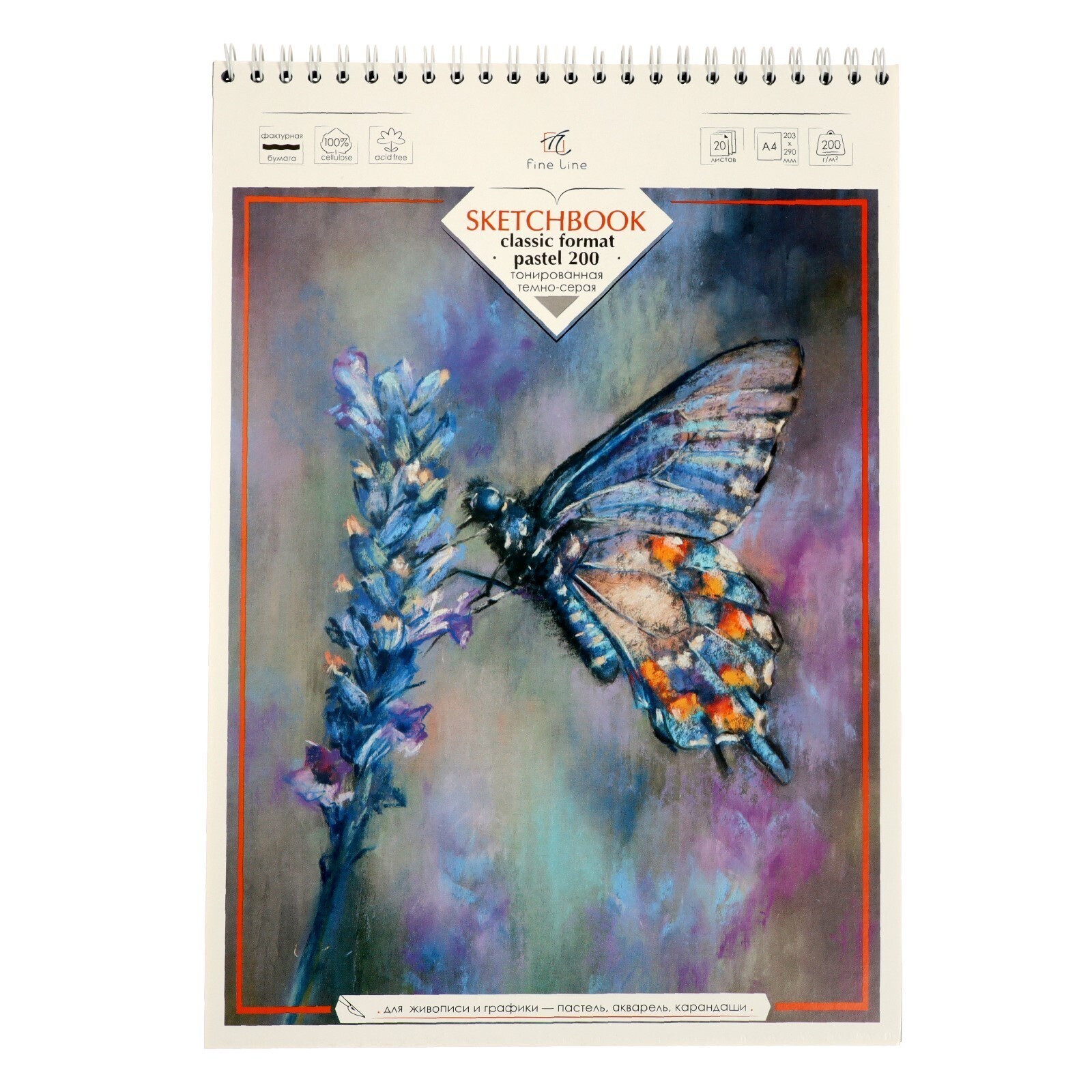 Блокнот-скетчбук А4, 20 листов на гребне Format Pastel, обложка мелованный картон, жёсткая подложка, матовая ламинация, серый блок 200 г/м2, 100% целлюлоза