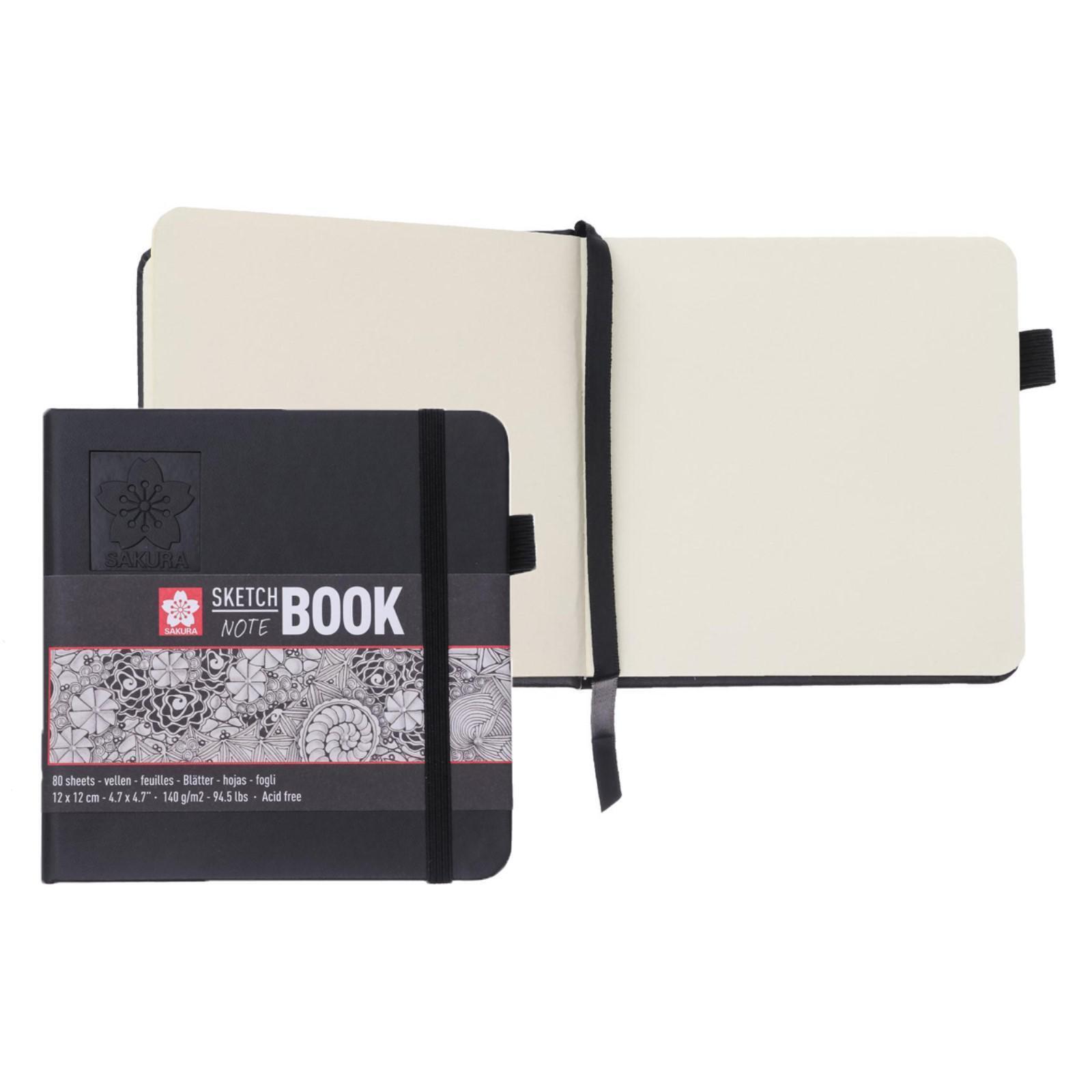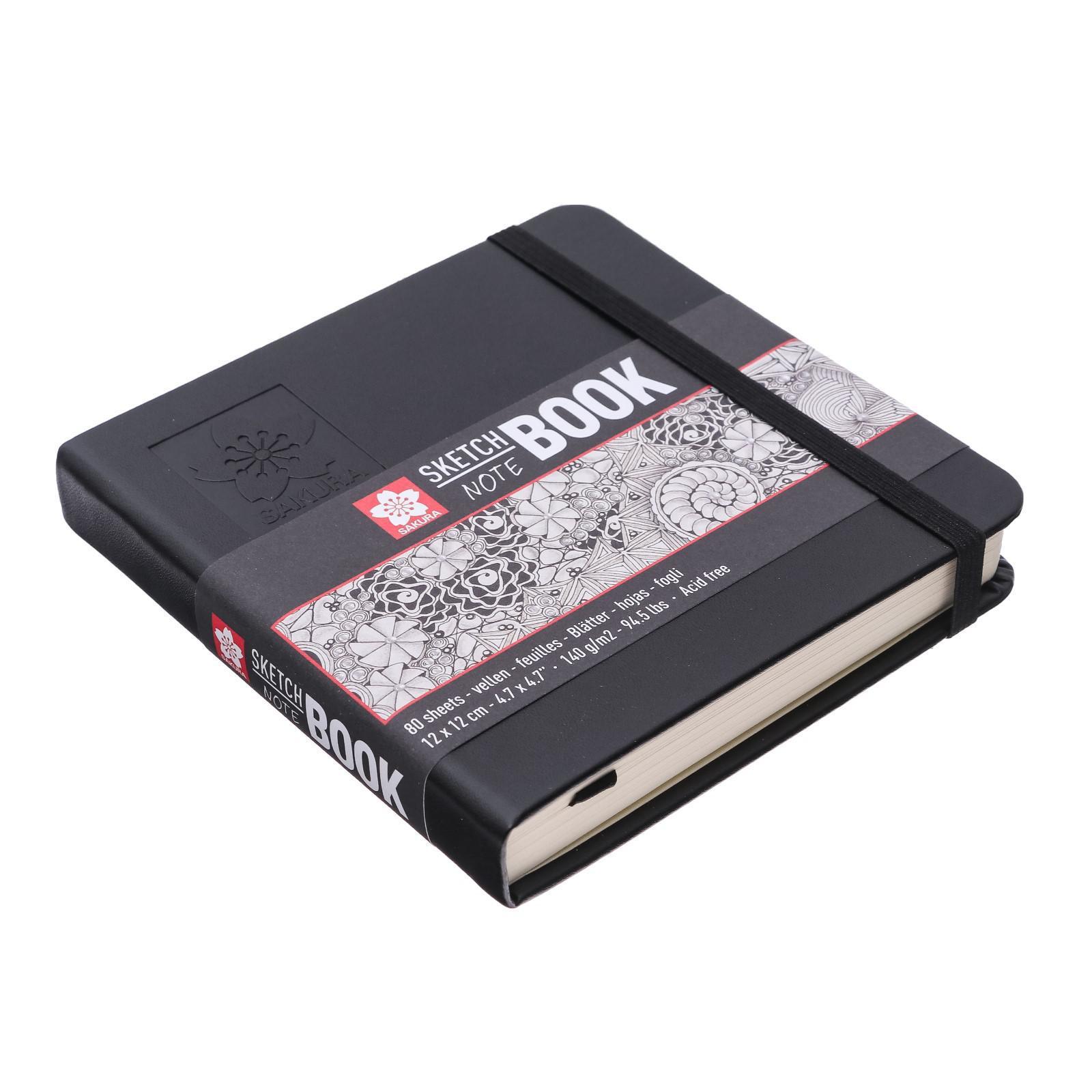 Блокнот для рисунков квадратный 120 х 120, 140 г/м² , Sakura 80 листов, твёрдая обложка, чёрная