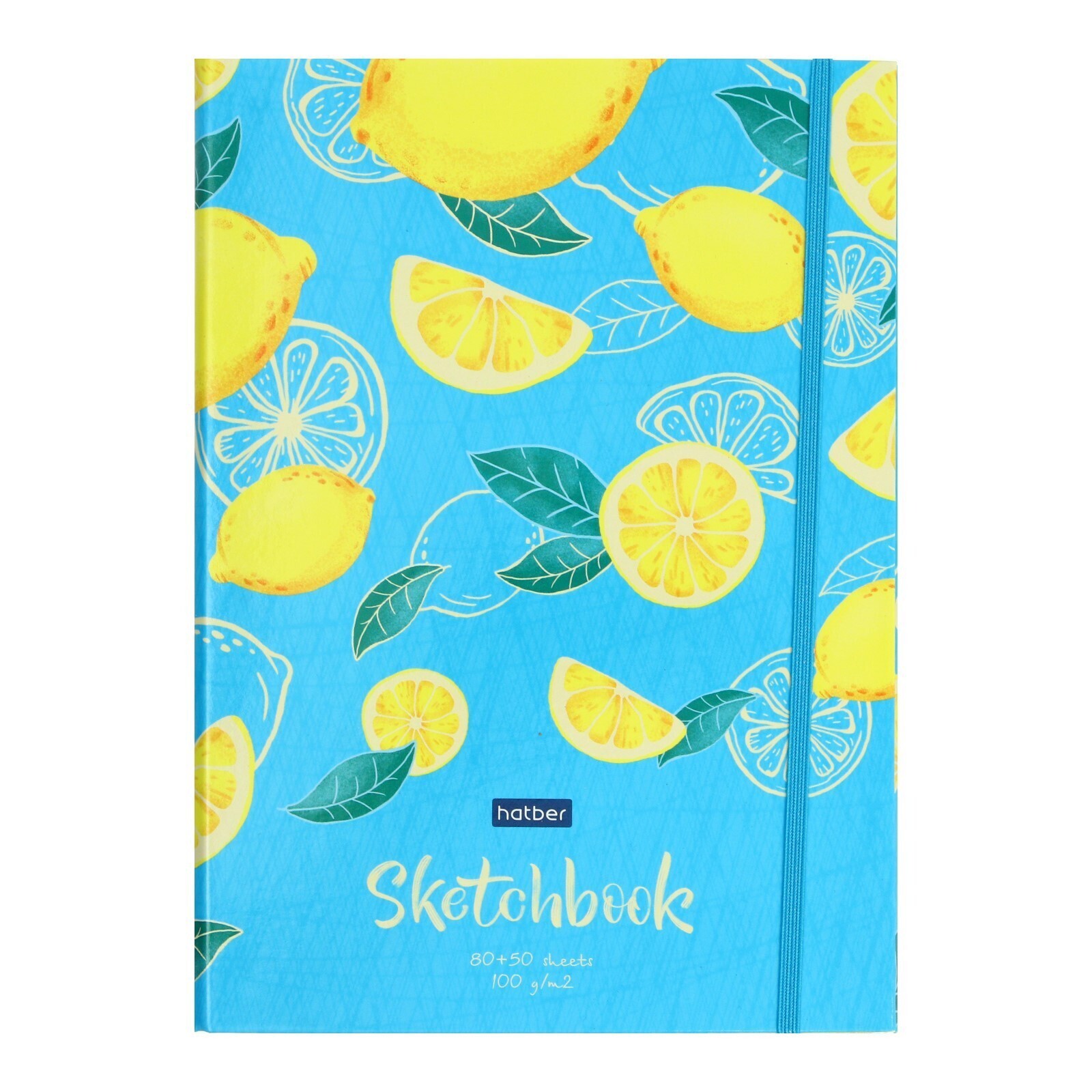 Скетчбук А5, 80+50 листов на гребне "Лимонный аромат", твёрдая обложка, с клапаном, на резинке, блок 100 г/м2