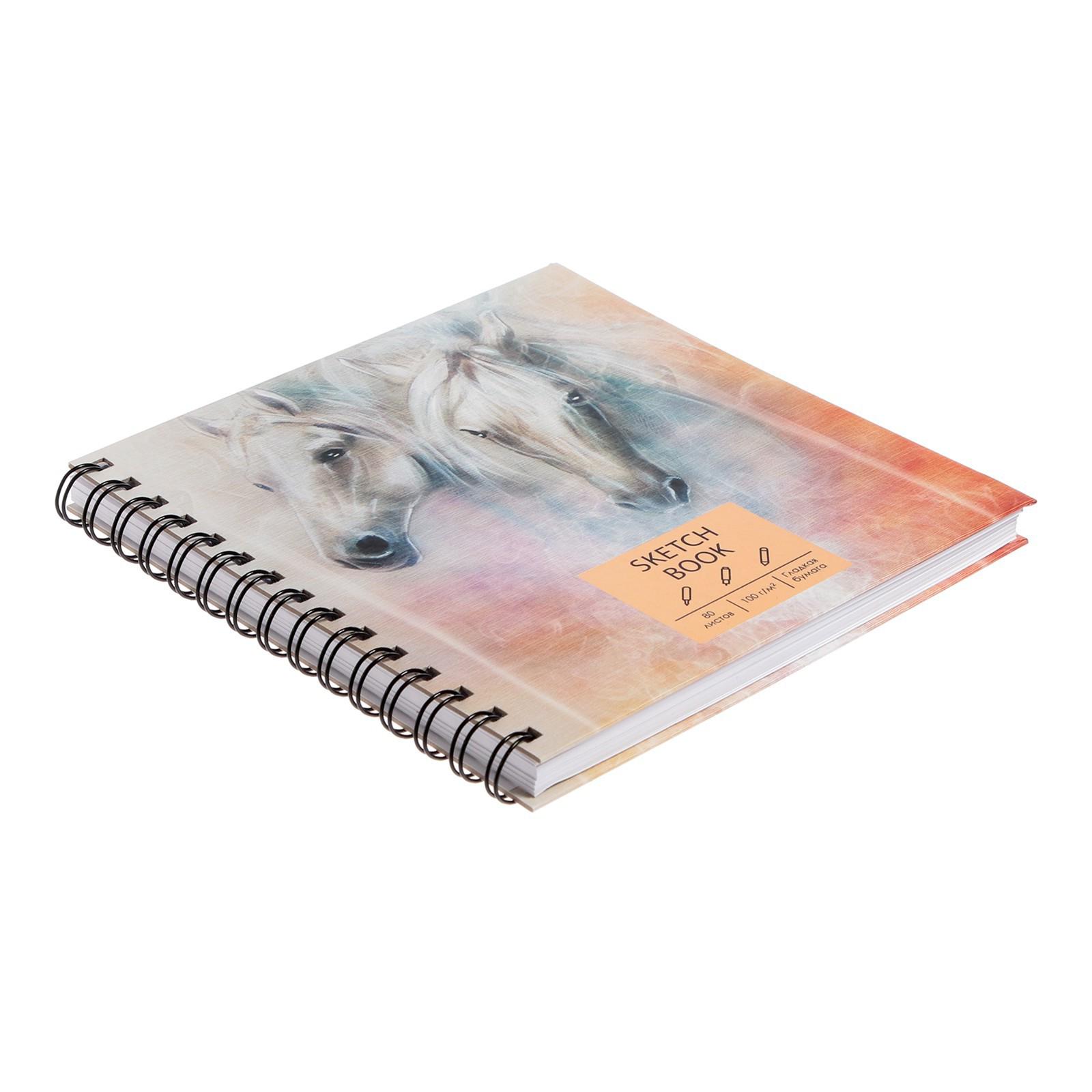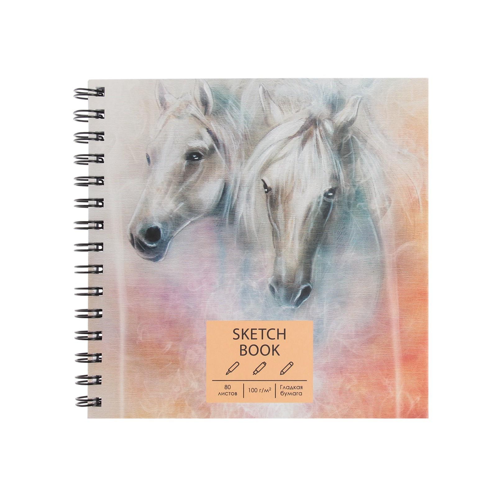 Скетчбук 195 х 195 мм, 80 листов, на гребне, "Лошади", твёрдая обложка, матовая ламинация, блок 100 г/м2