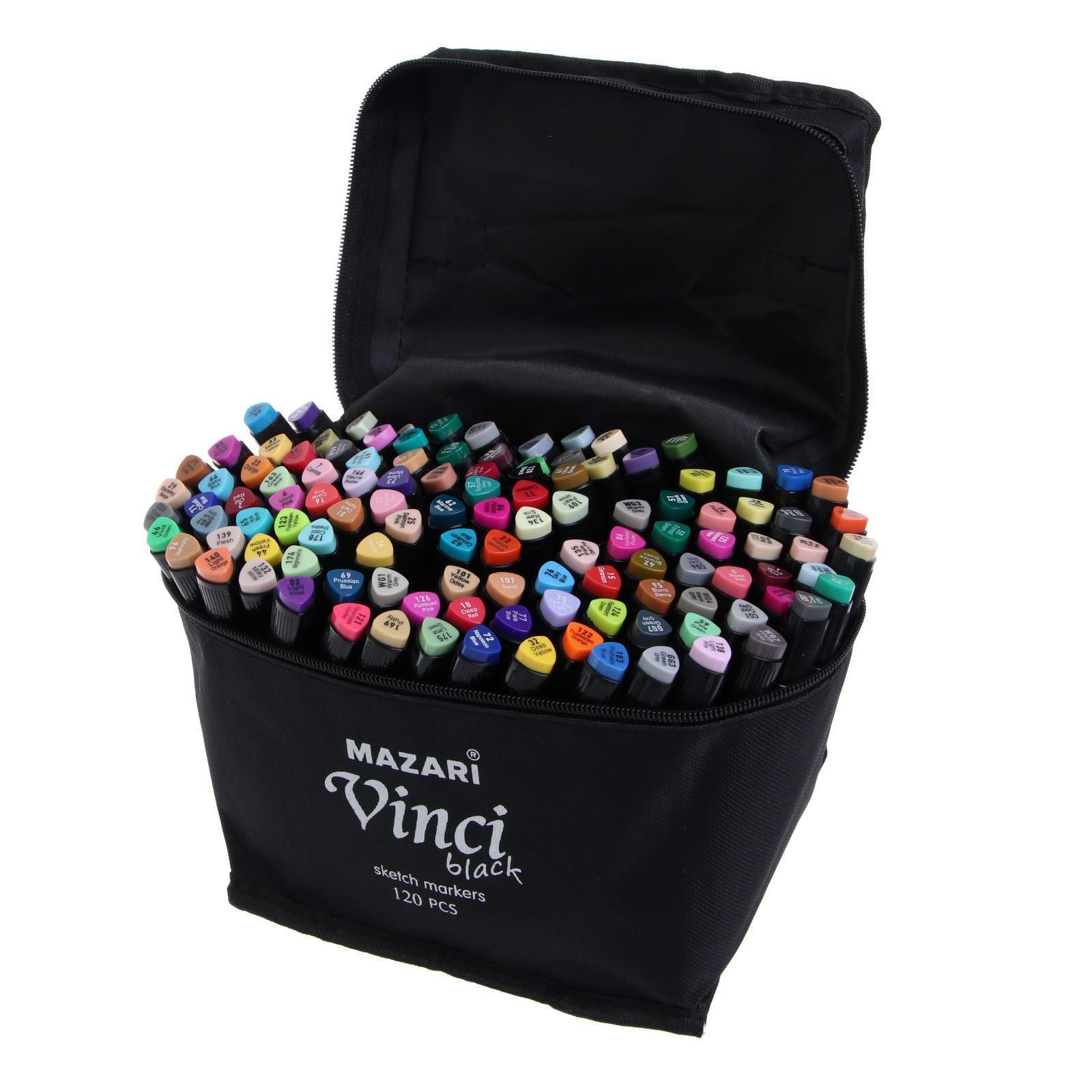 Маркеры для скетчинга двусторонние Mazari Vinci Black, 120 цветов