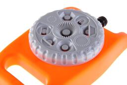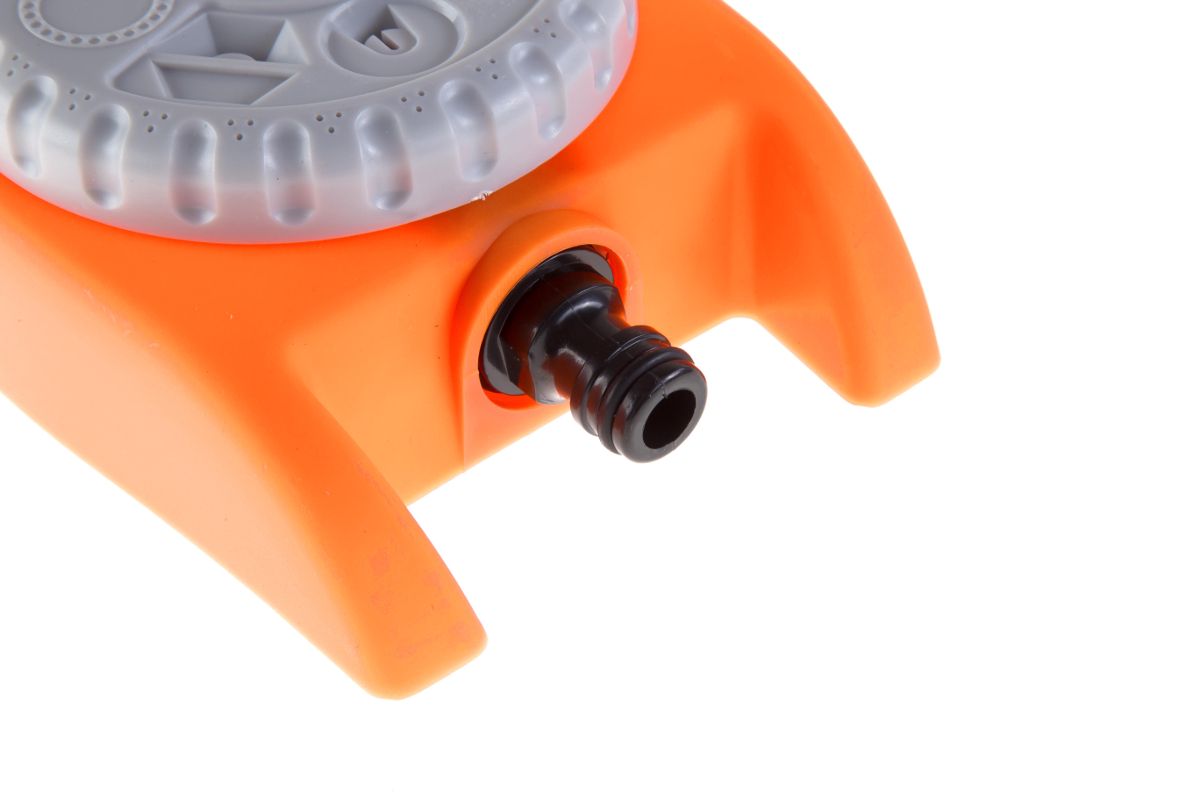 Распылитель на плоской подставке изготовлен из высококачественного ударопрочного пластика. Предназначен для стационарного полива растений в клумбах и различных небольших участках. Имеет 8 режимов полива, что позволяет производить полив участков разных форм и размеров. Устойчивая подставка прочно закрепляет устройство на поверхности почвы. Приспособление позволяет значительно экономить время и силы, затрачиваемые на полив растений. Легко подключается к шлангу при помощи соединителя 1/2''.
