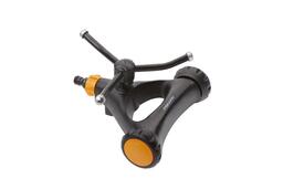 Круговой дождеватель подходит для полива маленьких участков диаметром до 13 метров. Устойчивость конструкции при передвижении по саду обеспечивают два колесика. Благодаря круговому движению наконечников осуществляется равномерный полив сада размером с капли дождя.
