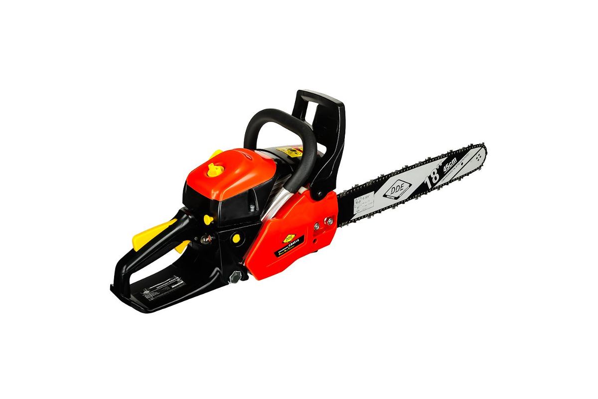 DDE CS4518 – полупрофессиональная садовая бензопила. Мощность двигателя – 2,45 л.с., длина шины – 45 см. Шаг цепи – 0,325, количество зубов – 72. Пригодится в загородном доме или на даче для обрезания веток, распила дров, обработки стройматериалов.