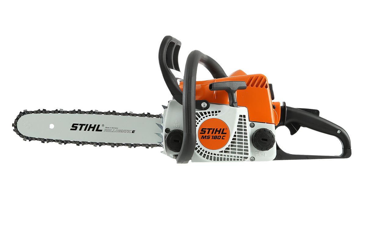 STIHL MS 180 C-BE 14'' – фермерская бензопила, которая является улучшенной версией пилы MS 180. У нее есть система облегчения запуска ErgoStart и боковое натяжение цепи без использования инструмента. Мощность 2 л.с. Длина шины – 35 см. Подойдёт для обрезки веток, заготовки дров и небольшого строительства на дачном участке.