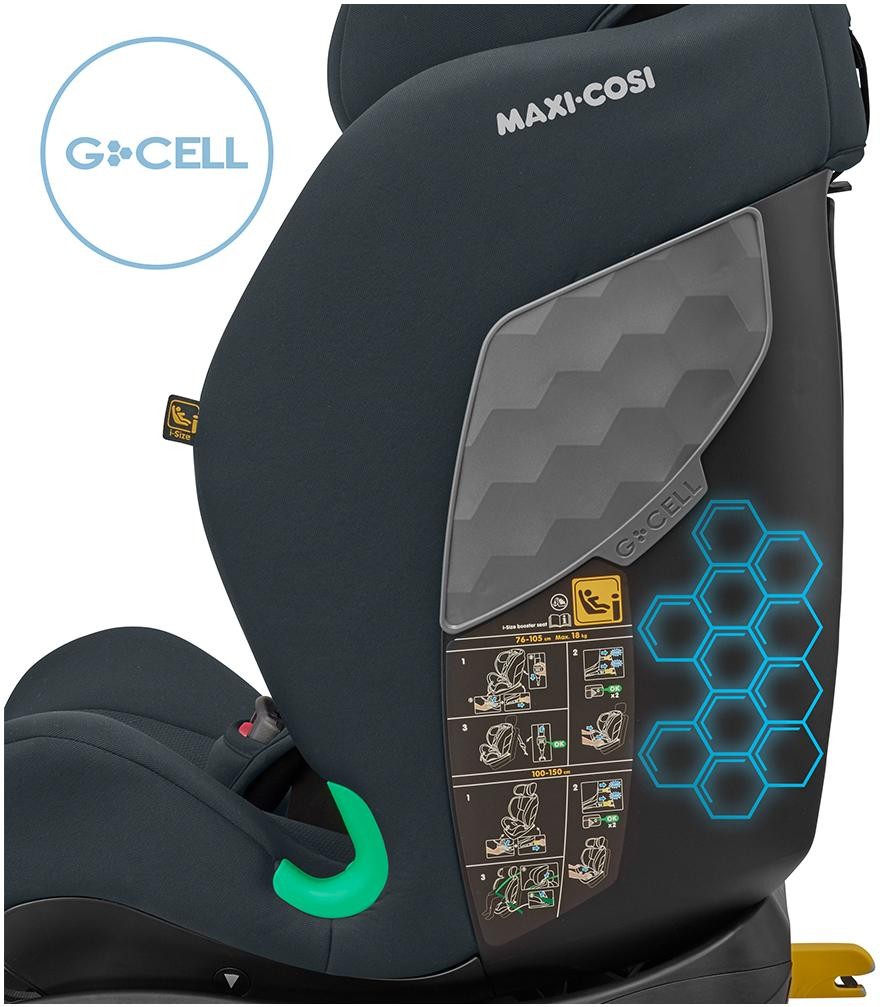 Titan i-Size розроблено з урахуванням довгострокової безпеки. Оскільки 45% ударів відбувається збоку, Titan i-Size має технологію G-CELL, інтегровану в бічні конструкції для додаткового захисту. Цей гнучкий, але міцний матеріал створений для розподілу сили удару від вашої дитини, щоб зменшити травми. 5-точкові ремені безпеки забезпечують безпеку вашої дитини, поки вона не досягне достатнього віку, щоб користуватися ременем безпеки автомобіля.