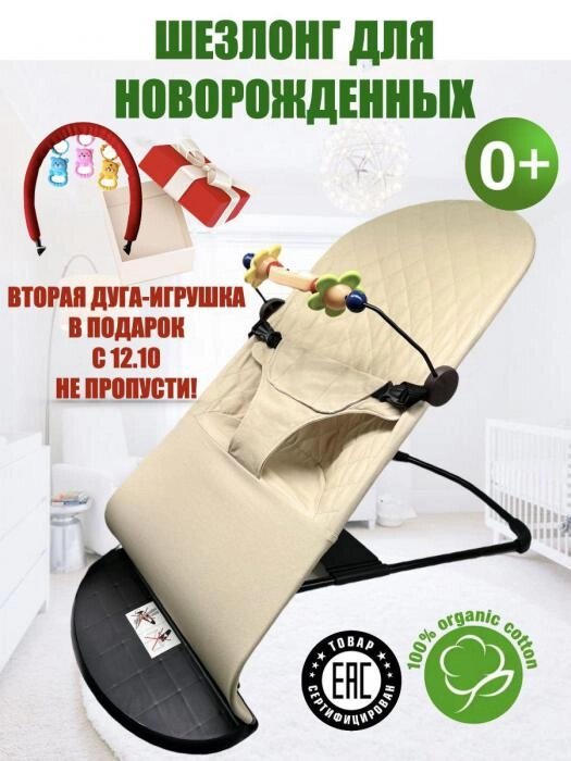 Шезлонг детский для новорожденных VS22 бежевые качели люлька-переноска каталка