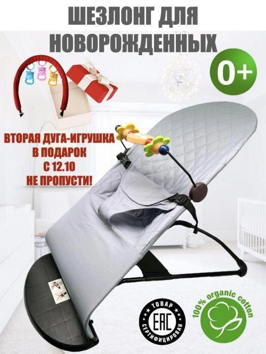 Шезлонг детский для новорожденных VS22 серые качели люлька-переноска каталка
