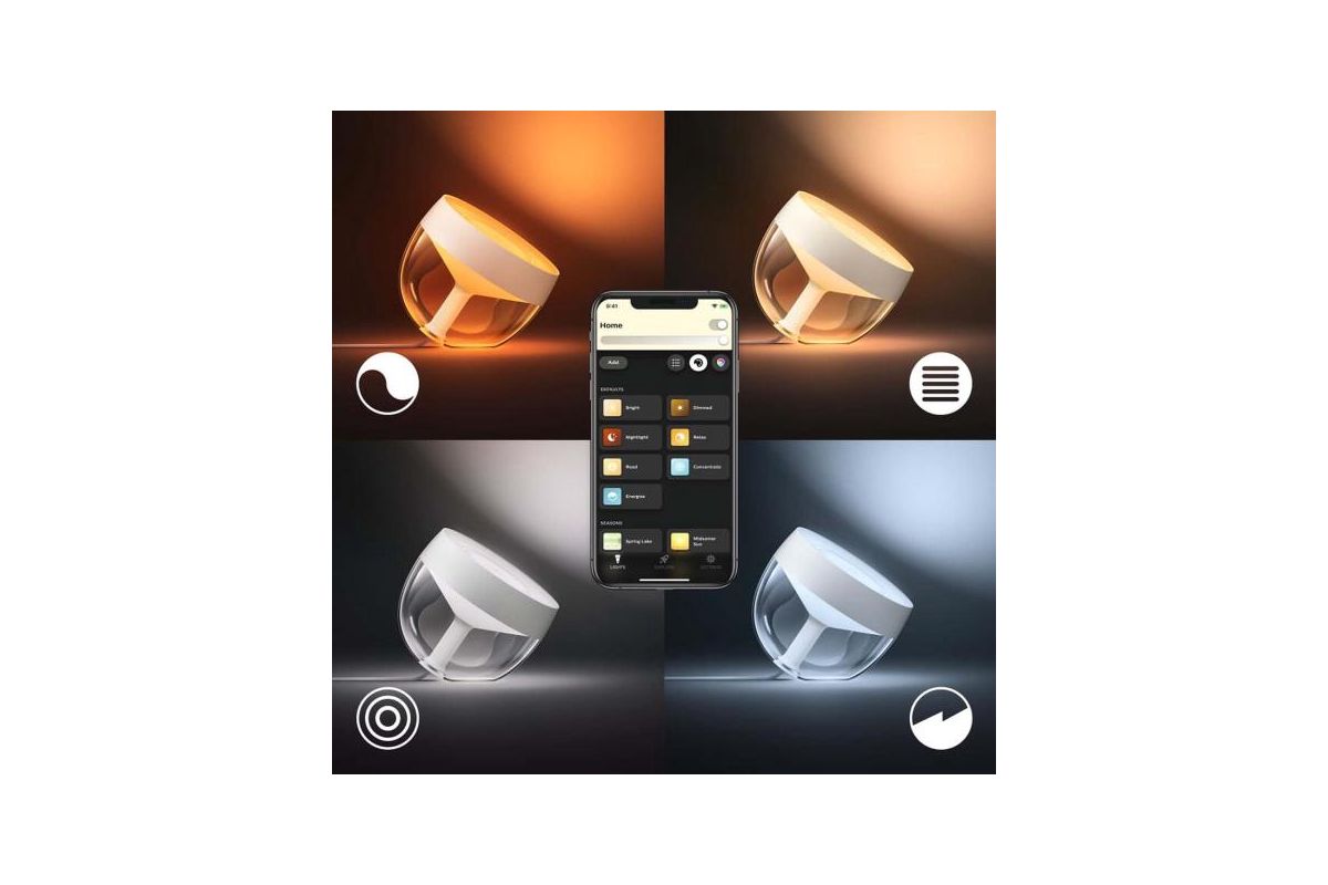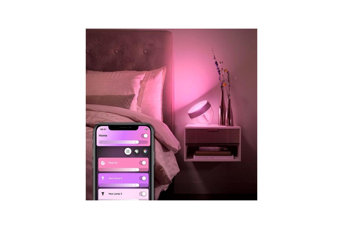 - Благодаря своему уникальному стилю акцентныи? светильник Philips Hue Iris станет прекрасным дополнением для любого интерьера. Его можно расположить в любом месте дома и наслаждаться цветнои? подсветкои? стен в гостинои? или мягким светом ночника в спальне;