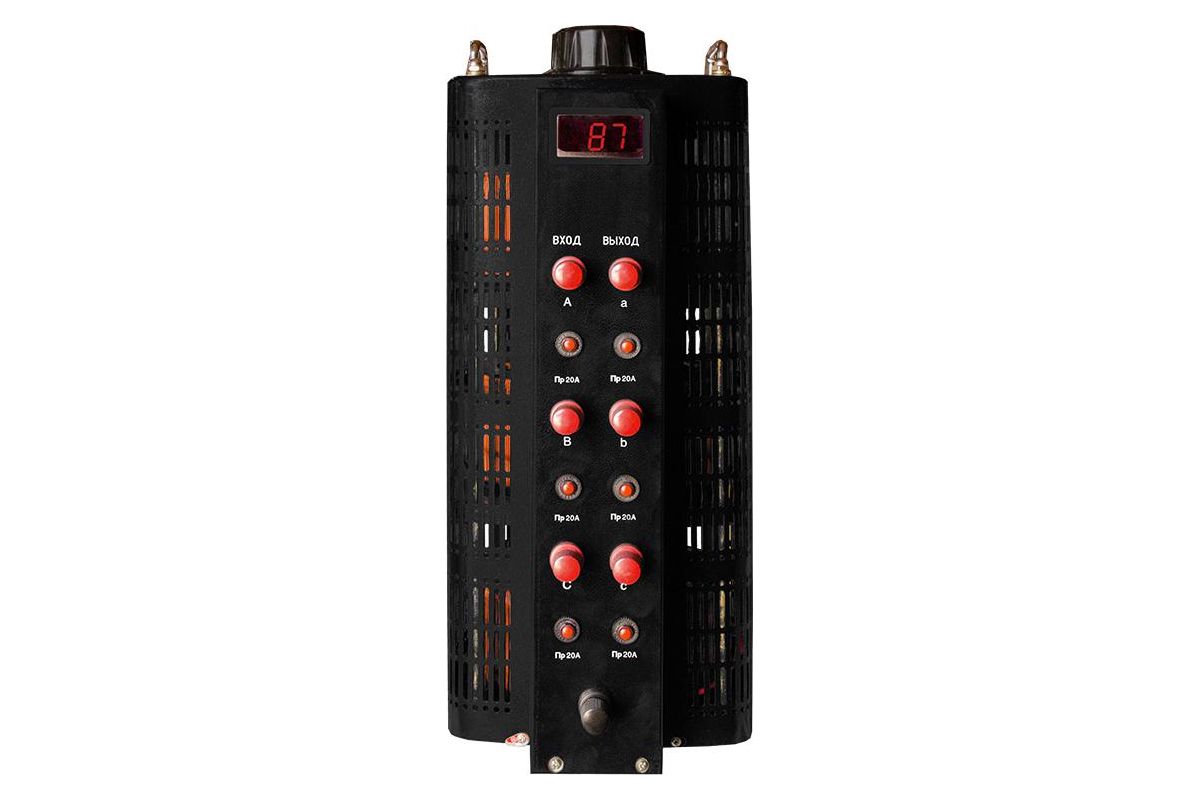 Лабораторный автотрансформатор (ЛАТР) серии TSGC2 Black Series (6 кВА) предназначен для плавного регулирования фазного напряжения от 0 до 300В (Линейного напряжения: от 0 до 520 В) под нагрузкой без разрыва цепи - в трёхфазной сети 380В 50Гц.