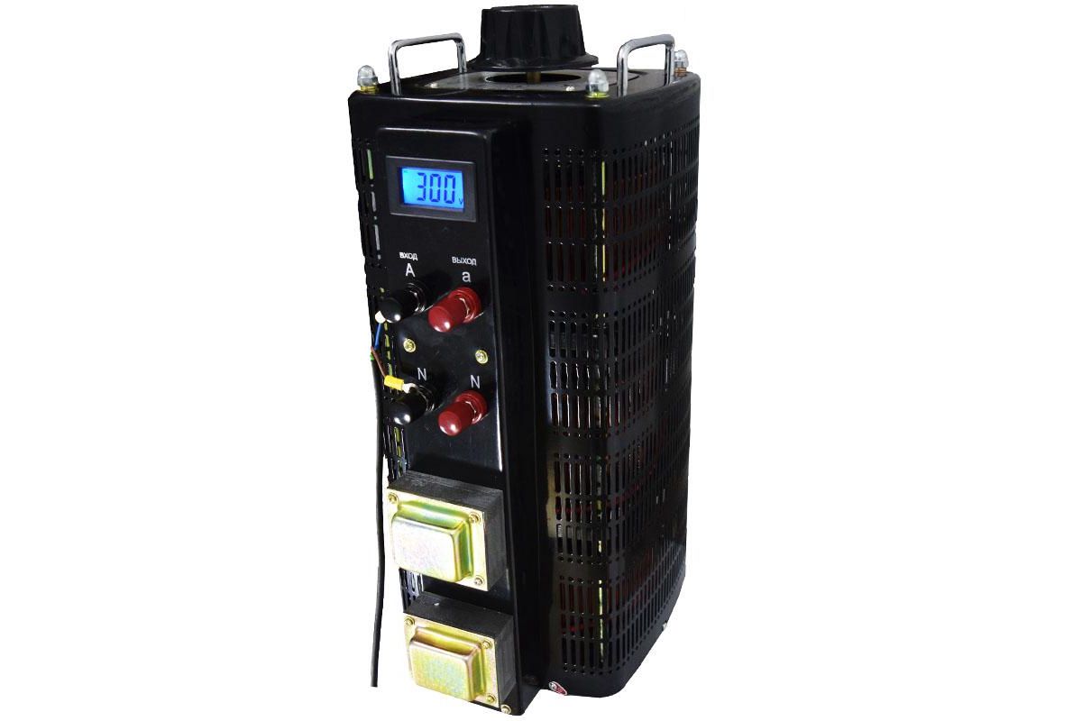 Автотрансформатор SUNTEK ЛАТР 20000 Вт с ЖК-табло, работает от сети 220 В и используется для постоянного удержания заданного напряжения. Диапазон выходных напряжений 0-300 Вольт.