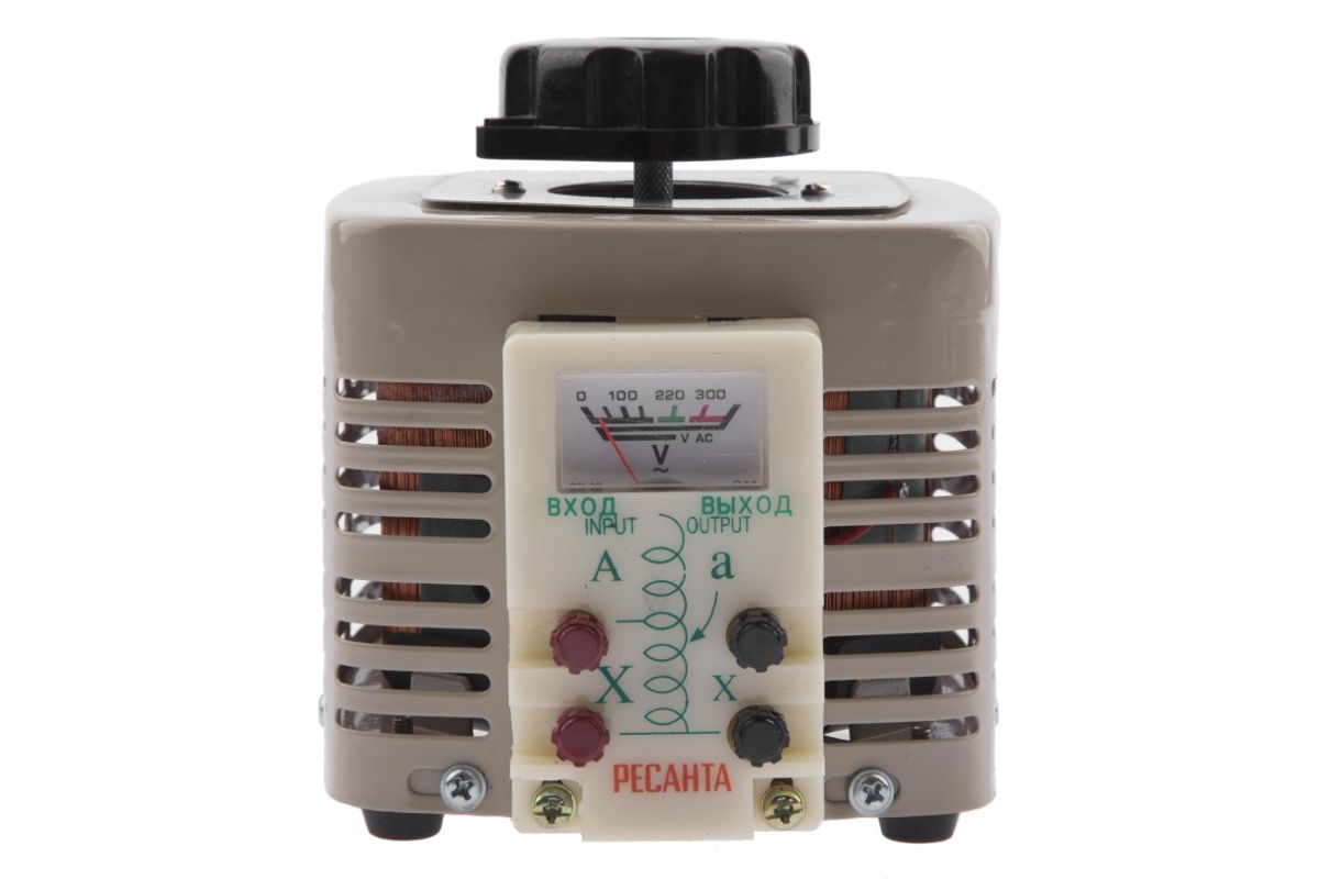 Автотрансформатор Ресанта ЛАТР TDGC2-0,5 - однофазный прибор, который работает от сети 220 В и используется для постоянного удержания заданного напряжения.