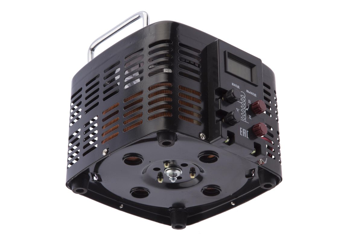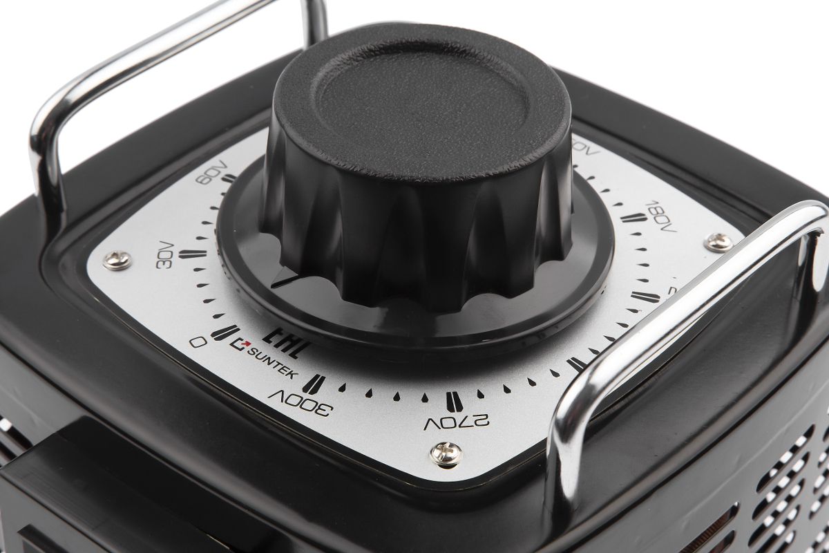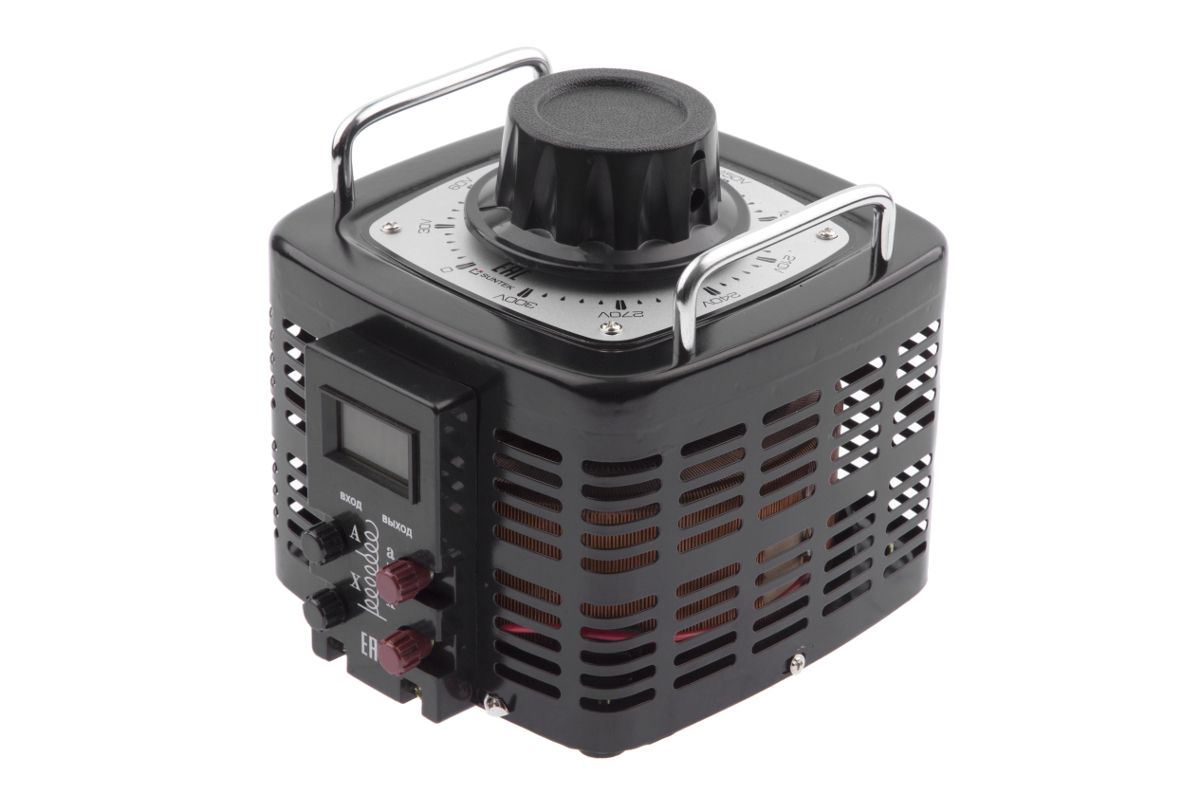 Ручка регулятор приводит в движение щетку, движущуюся по поверхности вольтодобавочной катушки, тем самым уменьшая, либо увеличивая выходное напряжение до желаемого в диапазоне от 0 до 300 Вольт. Точность регулировки при этом ограничена величиной напряжения витка, действующее напряжение выхода отображается на ЖК – дисплее с голубой подсветкой, что в сочетании с черным корпусом придает ЛАТРу САНТЕК изысканный внешний вид.