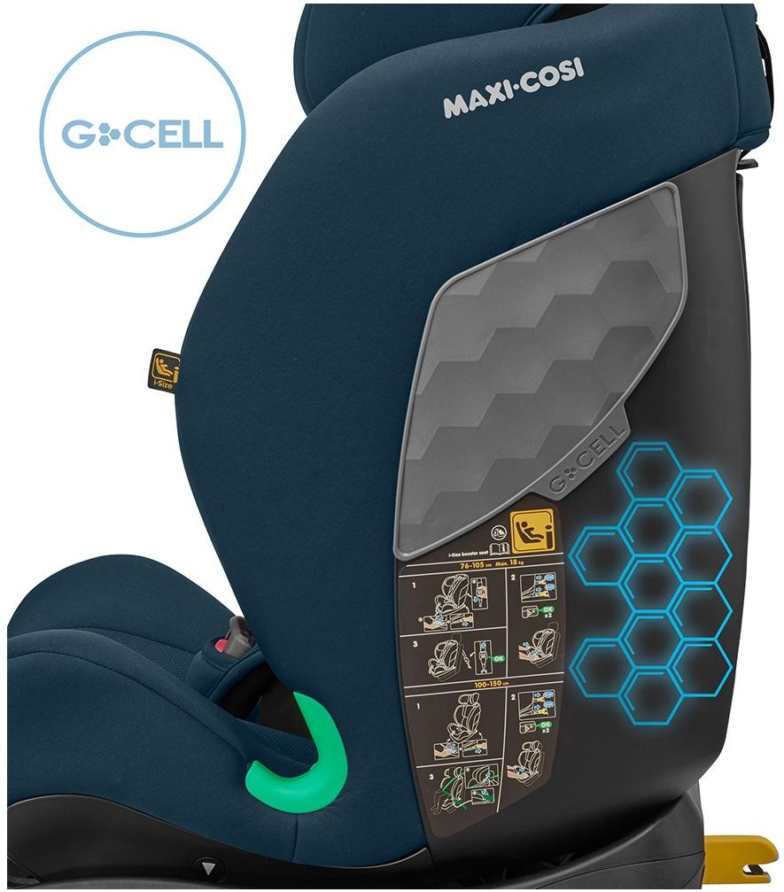 Titan i-Size розроблено з урахуванням довгострокової безпеки. Оскільки 45% ударів відбувається збоку, Titan i-Size має технологію G-CELL, інтегровану в бічні конструкції для додаткового захисту. Цей гнучкий, але міцний матеріал створений для розподілу сили удару від вашої дитини, щоб зменшити травми. 5-точкові ремені безпеки забезпечують безпеку вашої дитини, поки вона не досягне достатнього віку, щоб користуватися ременем безпеки автомобіля.