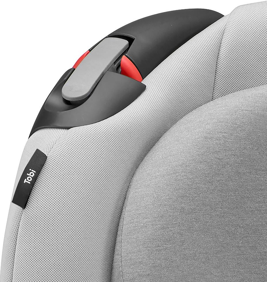 Сидіння зі зручними підлікотниками, заповнені всередині пінопластом формує спеціальний захист, у відділі плечей і голови, та посилений з боків. До того ж, автокрісло, що відповідає анатомічній формі, не заважає огляду і з нього малюку відкривається все, що відбувається за вікном. Таким чином, дитина активно пізнає довколишній світ. Універсальне крісло Tobi росте паралельно з дитиною, забезпечує безпеку і надійність, так як цей модельний зразок показав чудові результати на тестуванні.