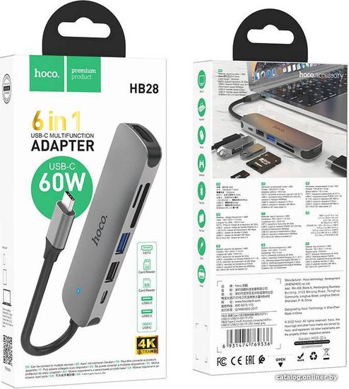 • Все разъемы на адаптере USB-A 3.2 Gen1 (5 Гбит/с), USB-A 2.0, HDMI, USB-C (только для зарядки)