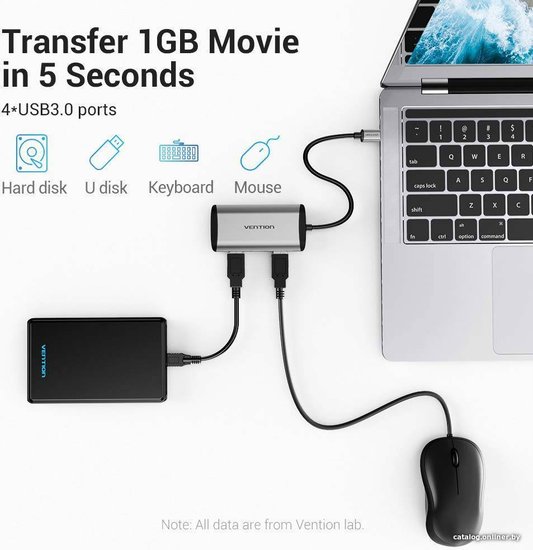 • Все разъемы на адаптере USB-A 3.2 Gen1 (5 Гбит/с), microUSB 2.0