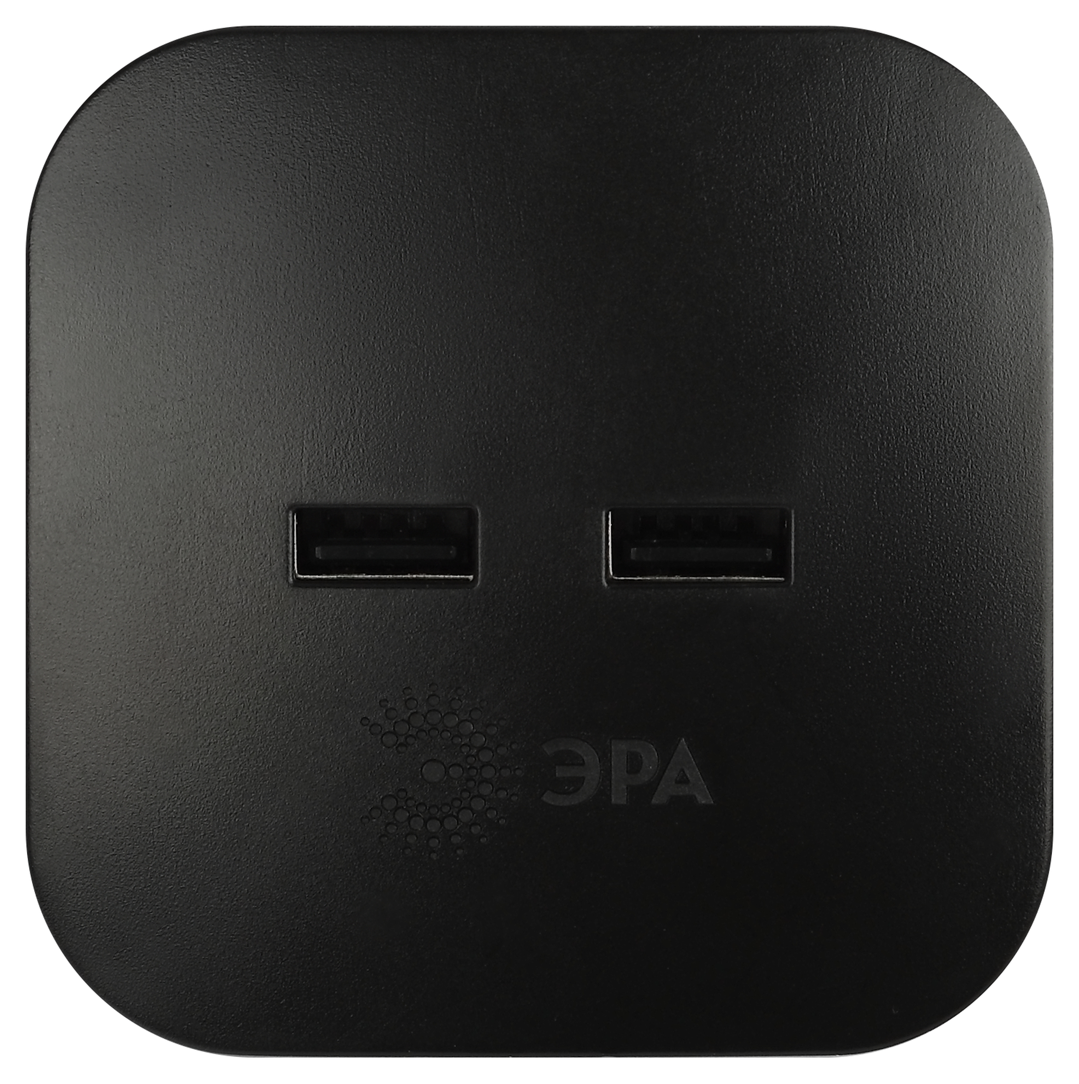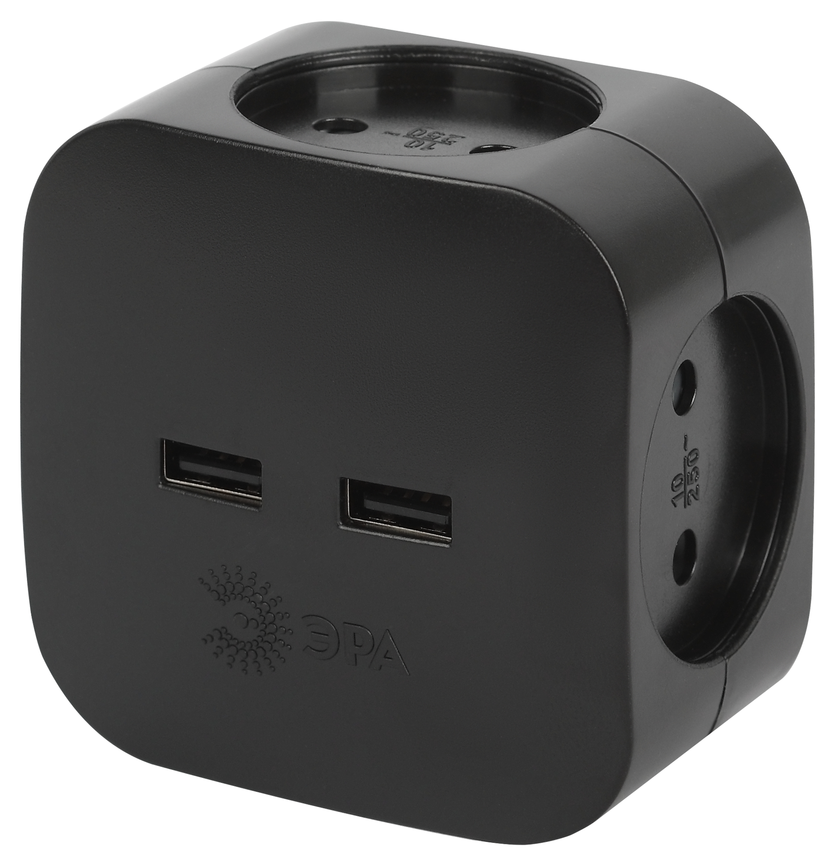 Разветвитель электрический ЭРА SP-4-USB-B на 4 розетки + 2xUSB 2400mA, без заземл 10А (черный)