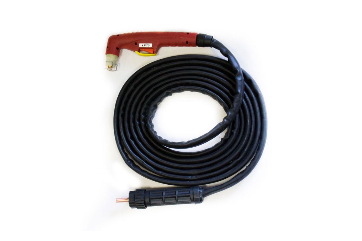 Наличие кабеля длиной 6 метров позволяет выполнять работы на больших площадях без перемещения плазмореза. Конструкция резака предусматривает кнопочное управление.