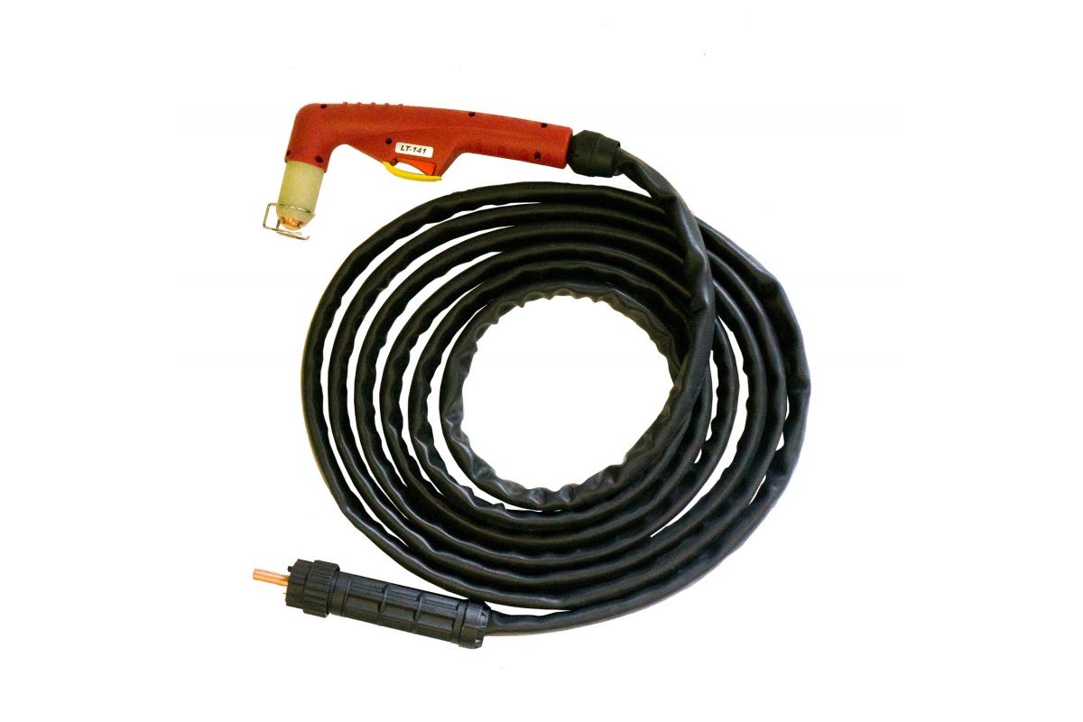 Наличие кабеля длиной 6 метров позволяет выполнять работы на больших площадях без перемещения плазмореза. Конструкция резака предусматривает кнопочное управление.