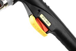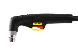 Наличие кабеля длиной 6 метров позволяет выполнять работы на больших площадях без перемещения плазмореза. Конструкция резака предусматривает кнопочное управление.