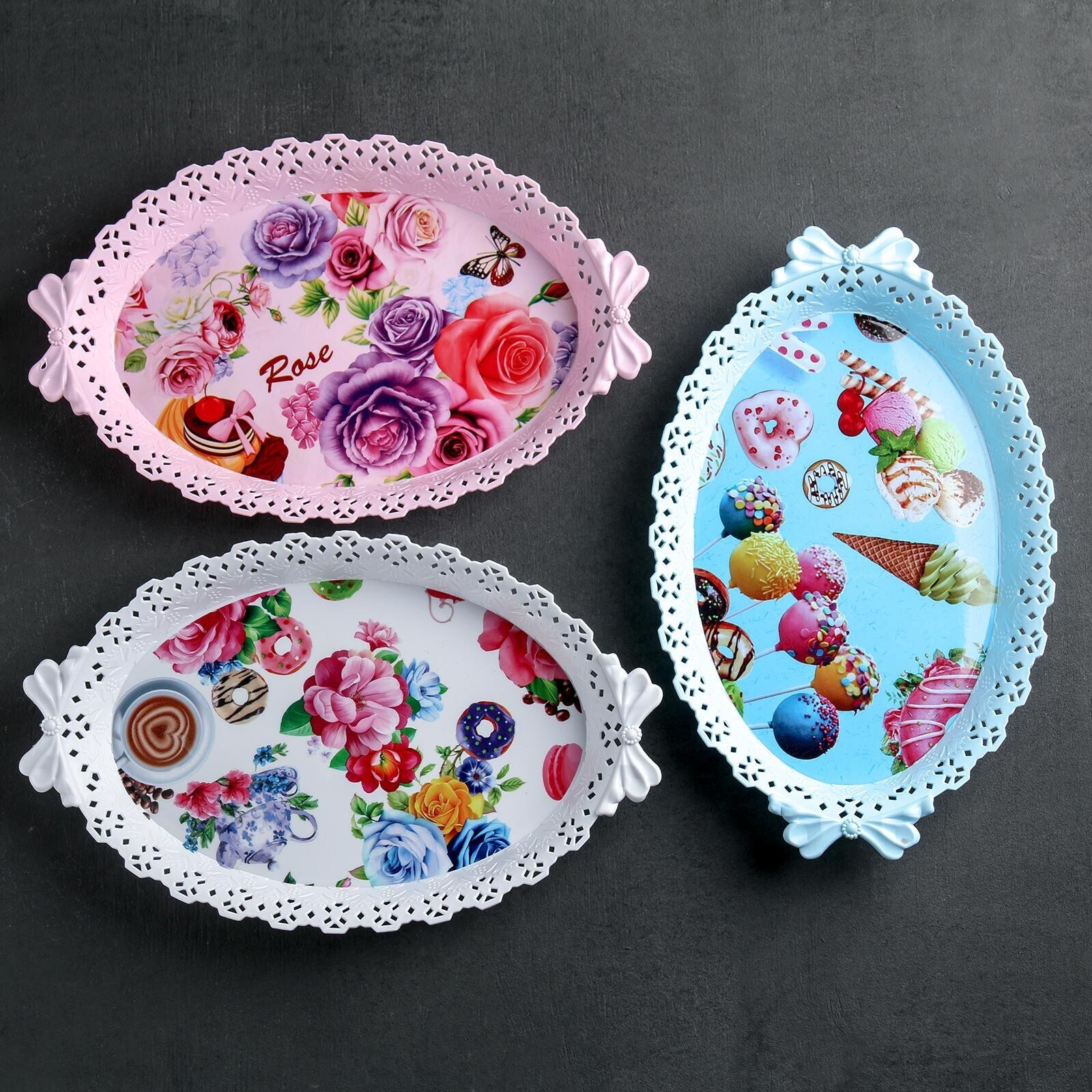 Поднос пластиковый «Пастораль», 36×22 см, цвет МИКС