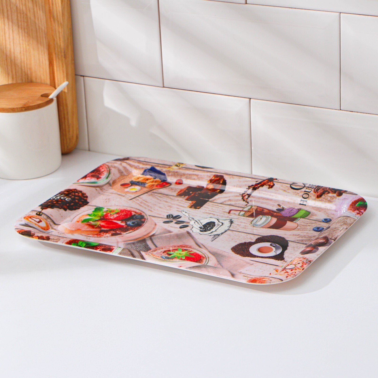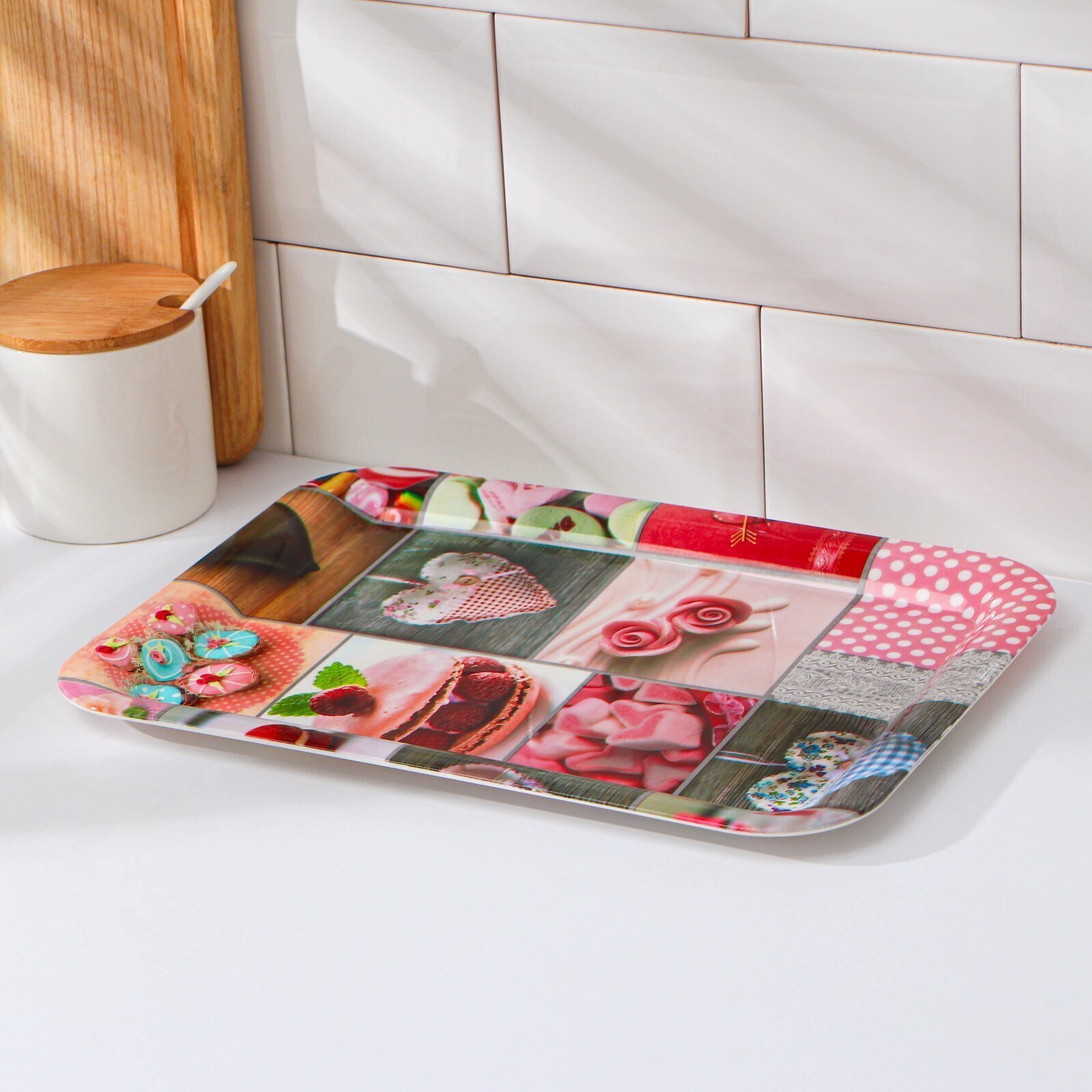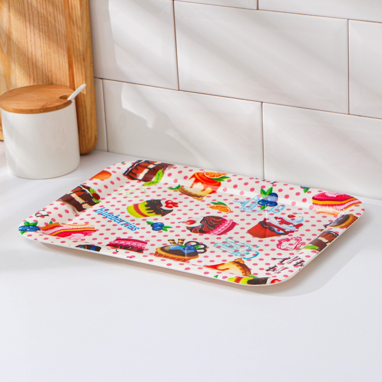 Поднос пластиковый прямоугольный «Самобранка», 30×21 см, рисунок МИКС