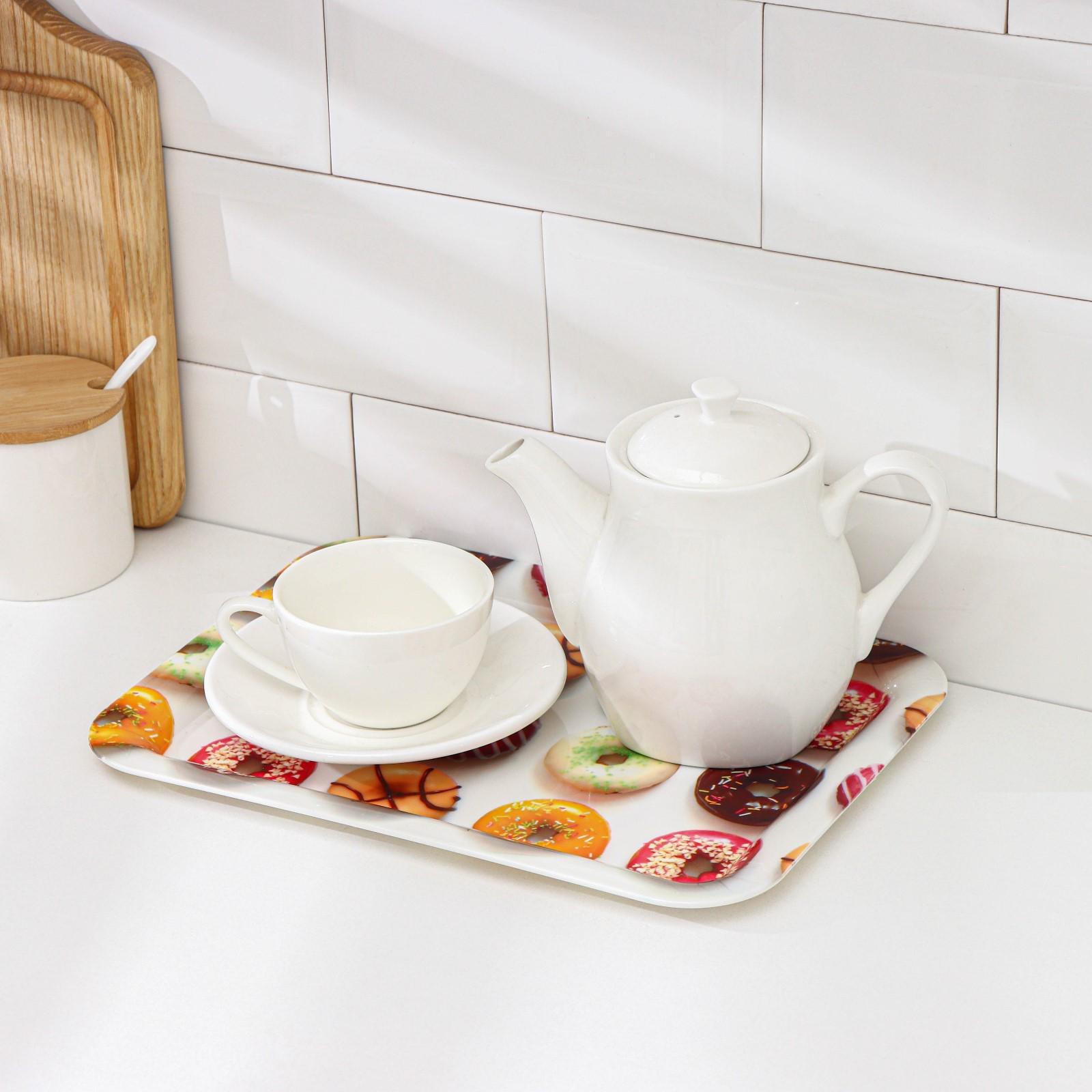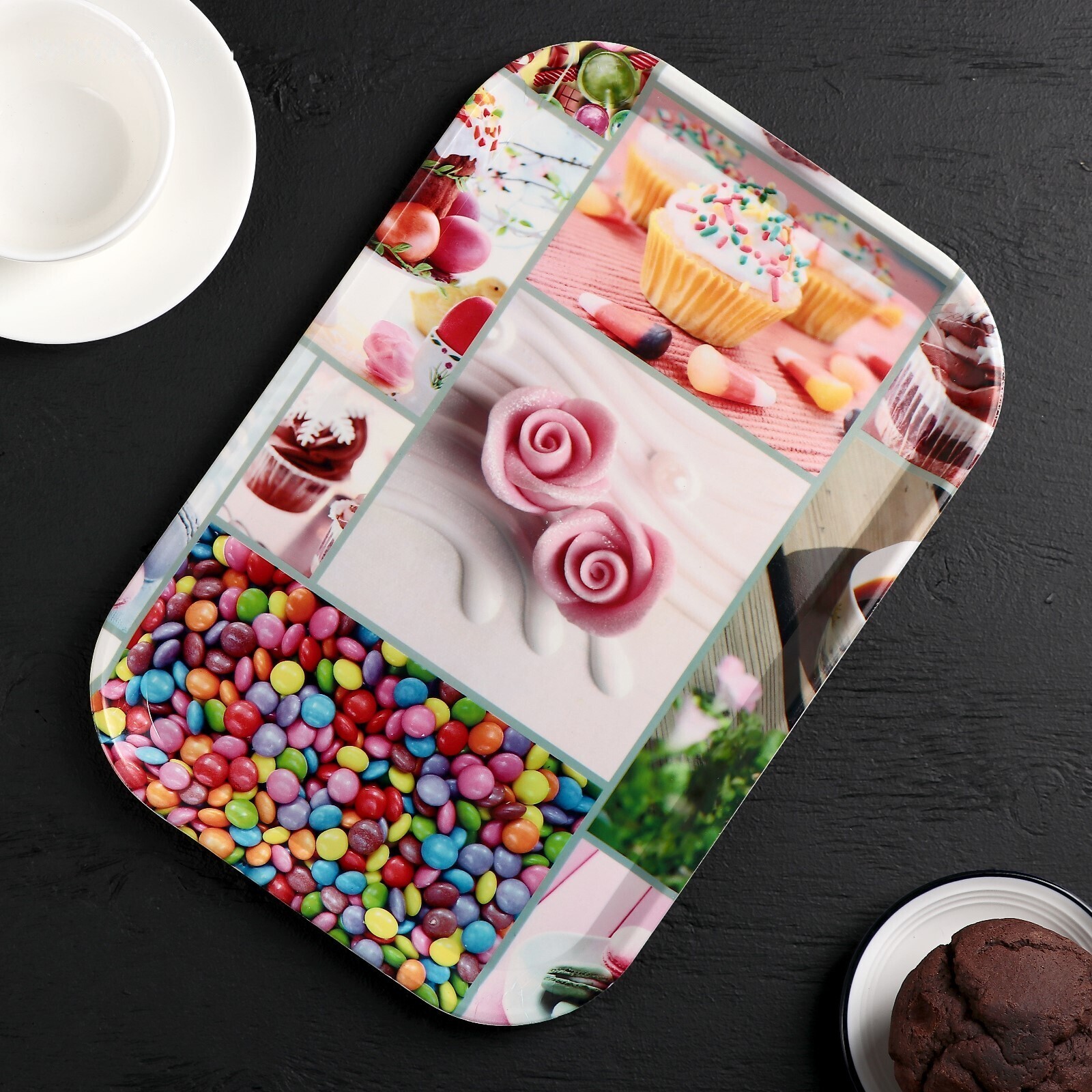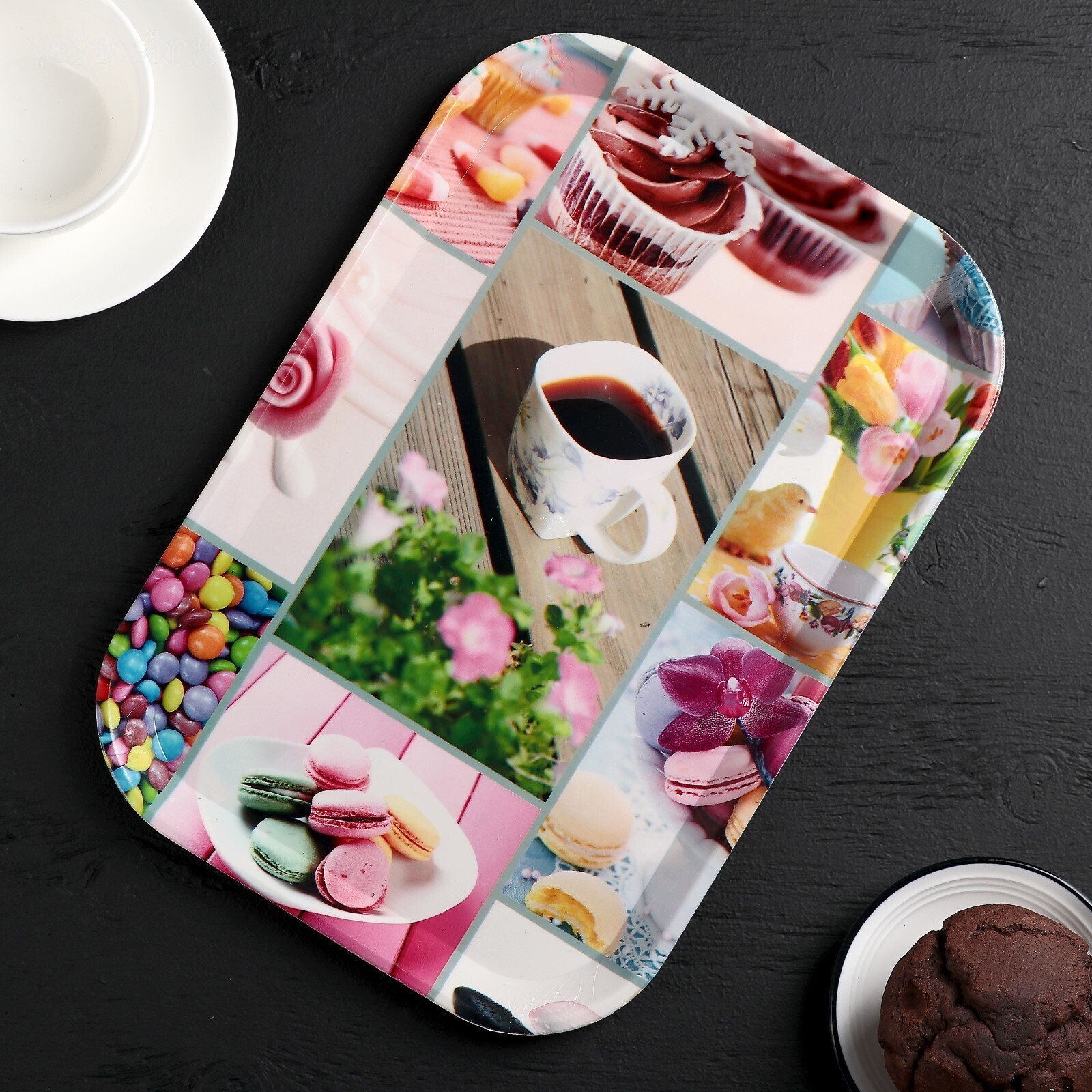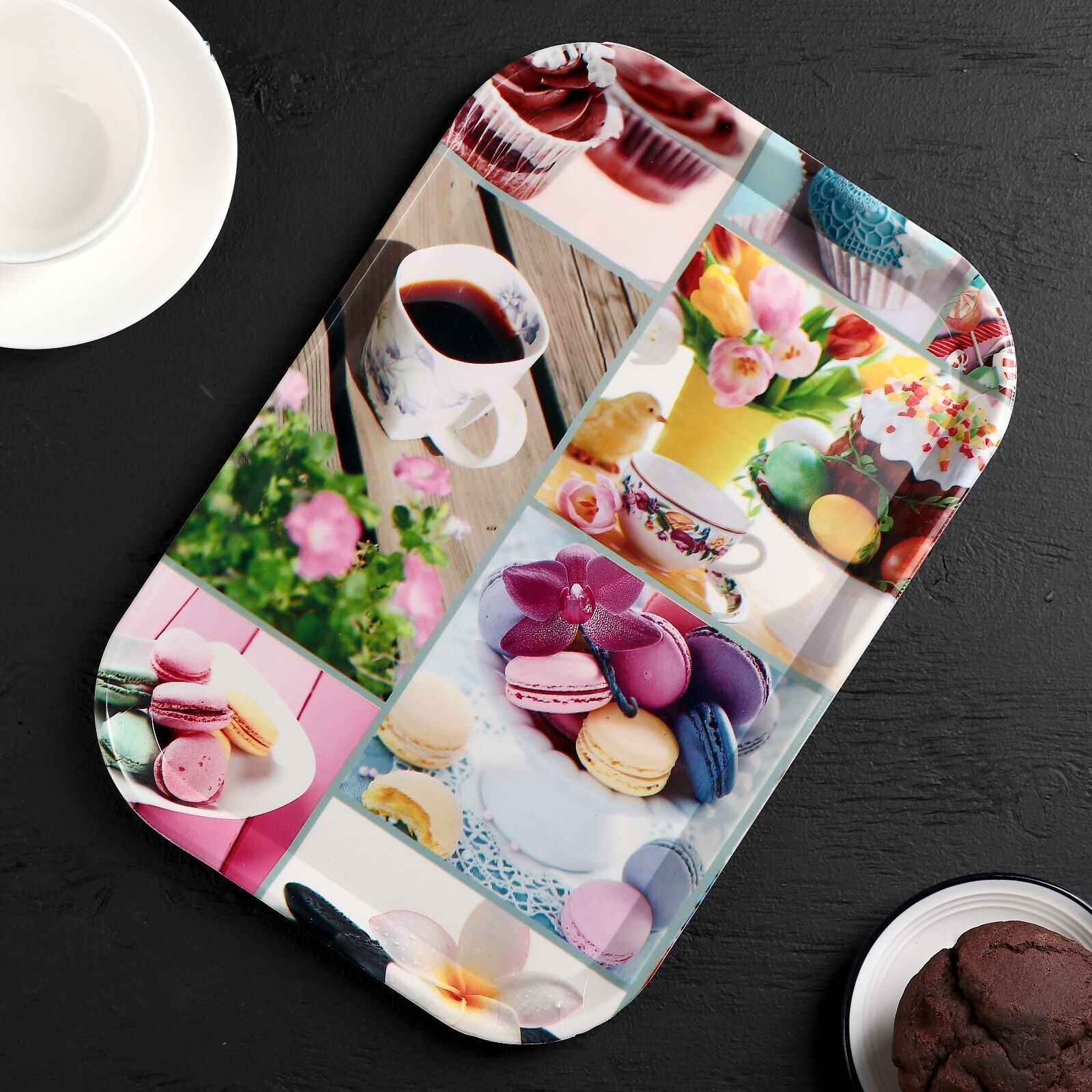 Поднос пластиковый прямоугольный «Самобранка», 30×21 см, рисунок МИКС