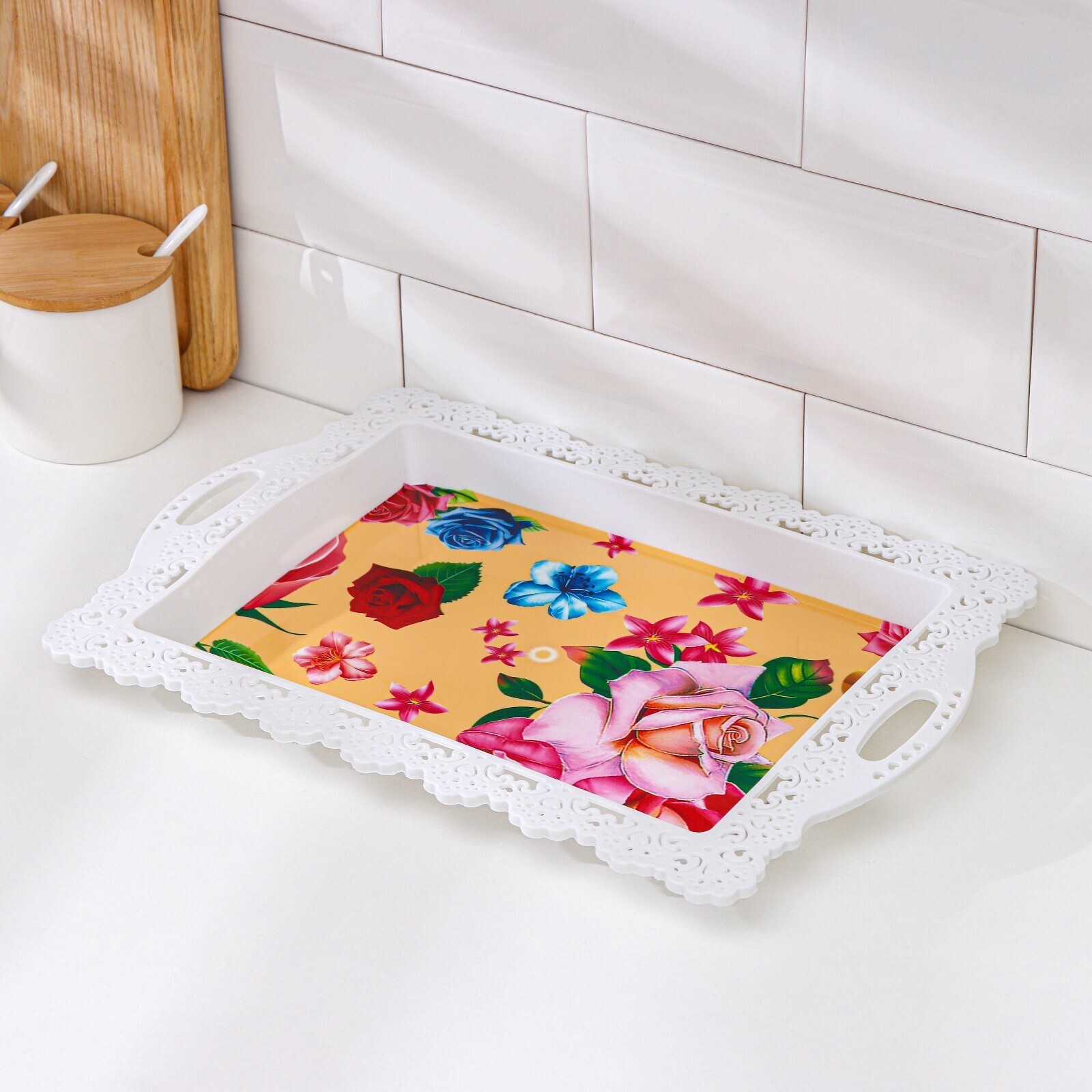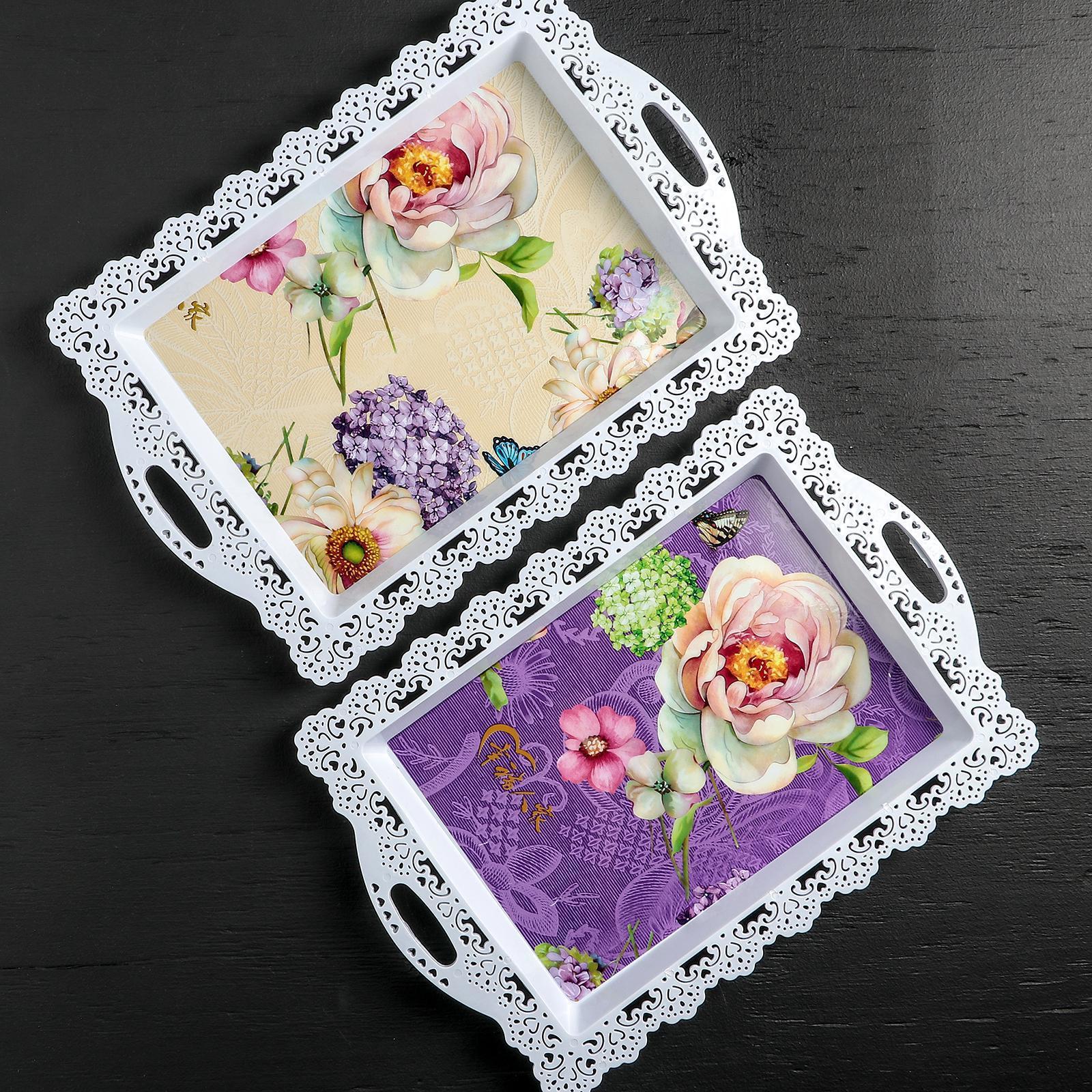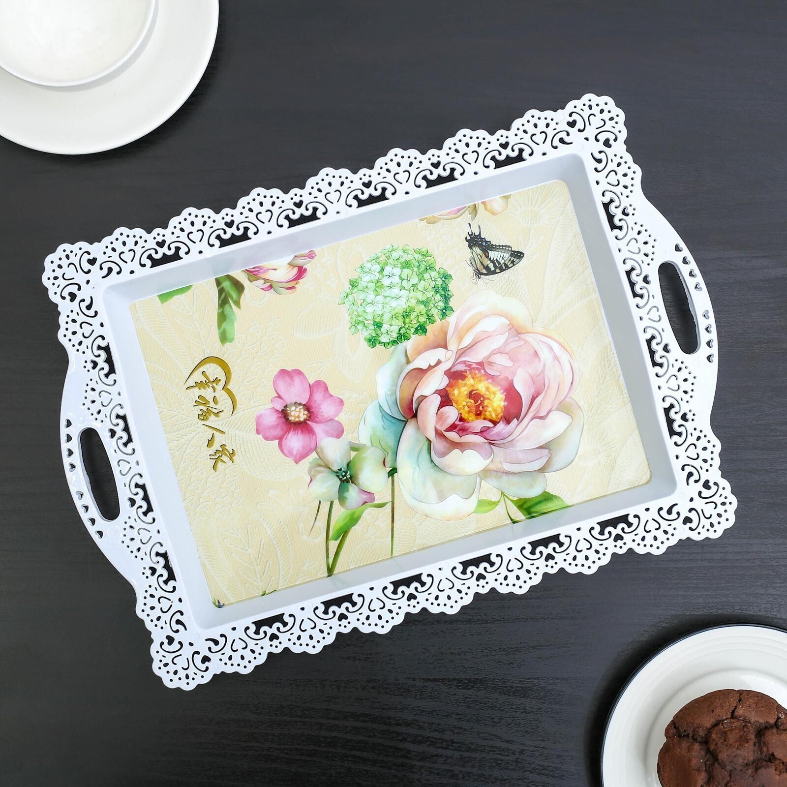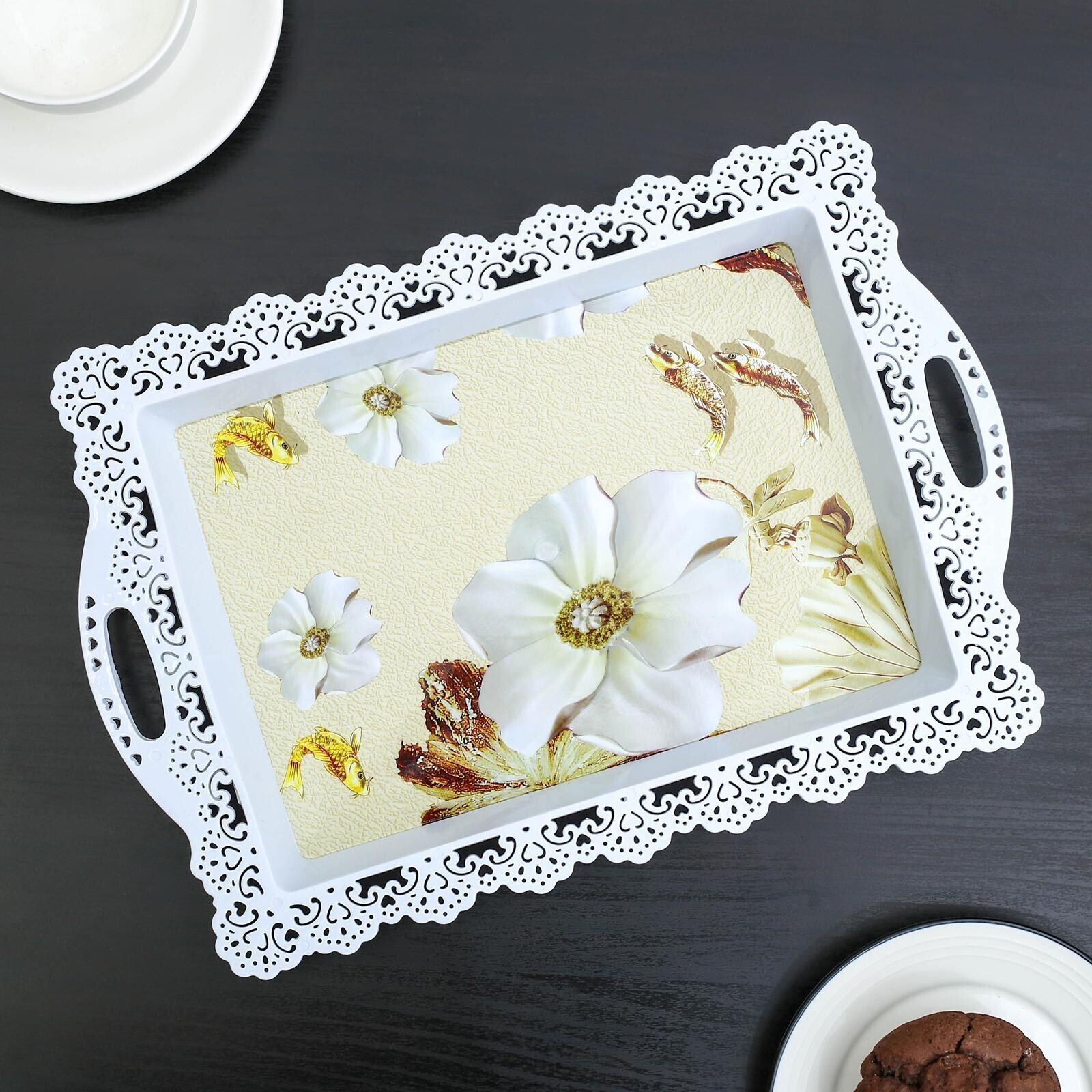 Поднос пластиковый «Ажурная кайма», 35×24 см, рисунок МИКС