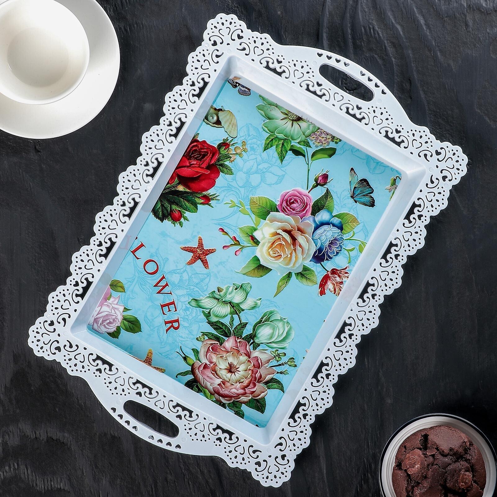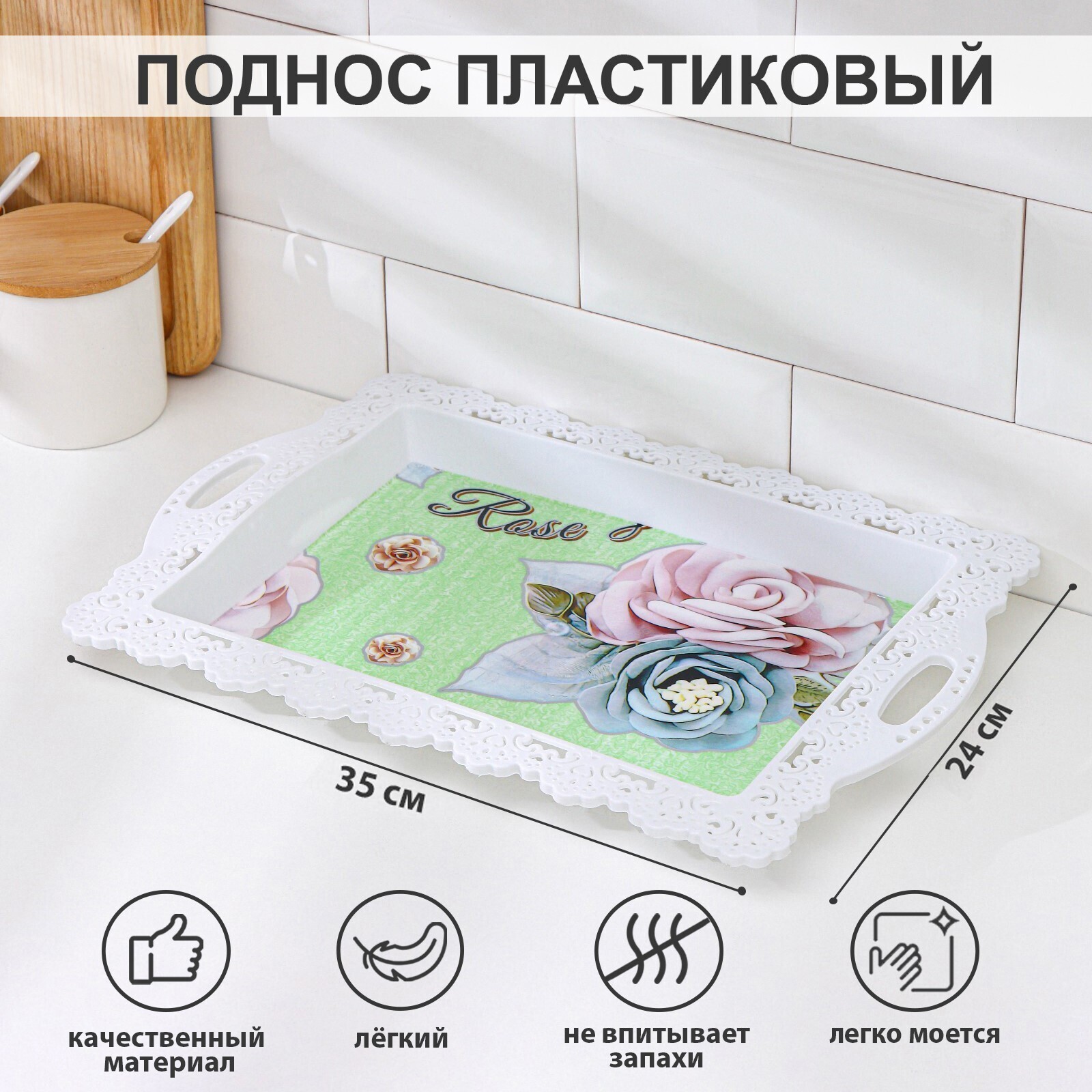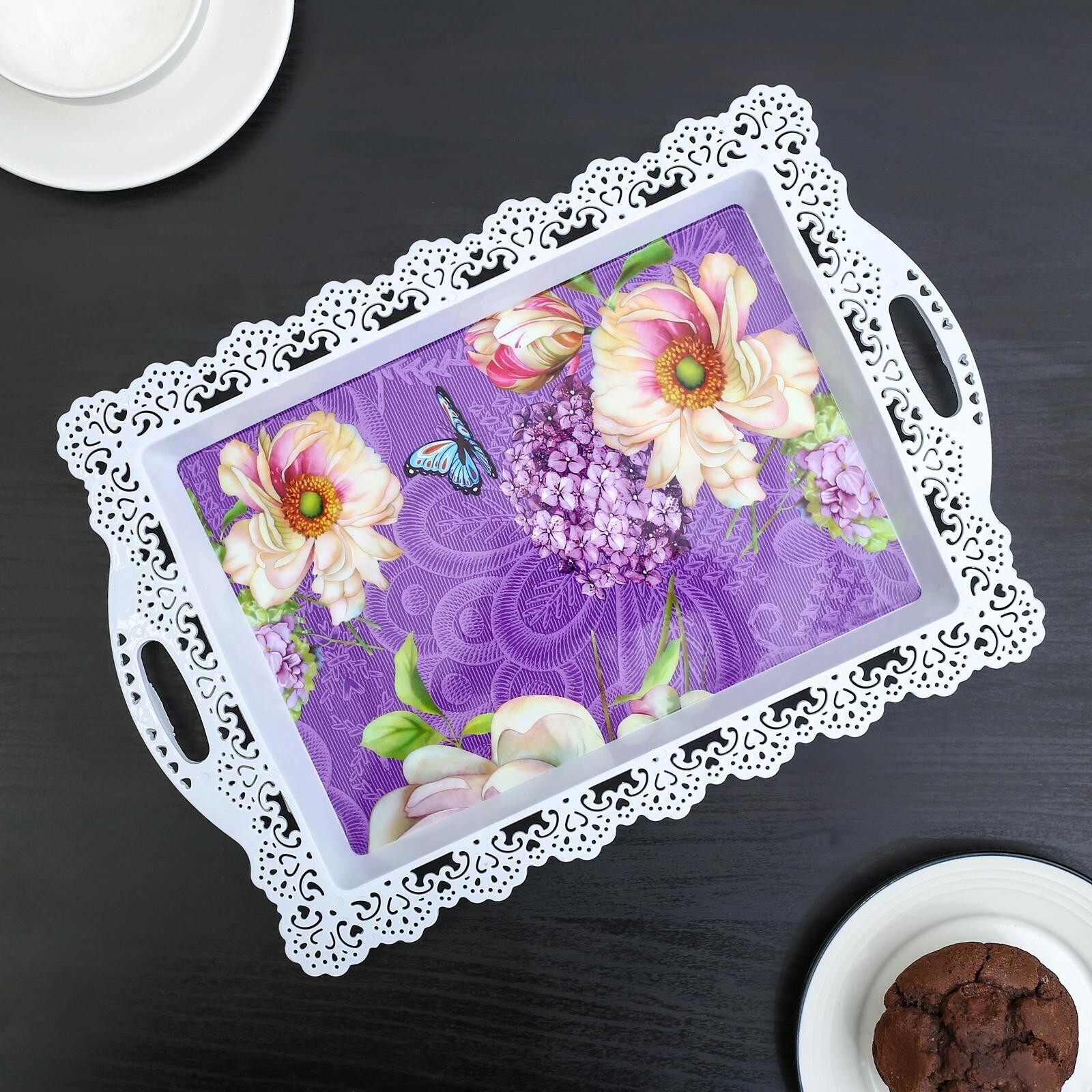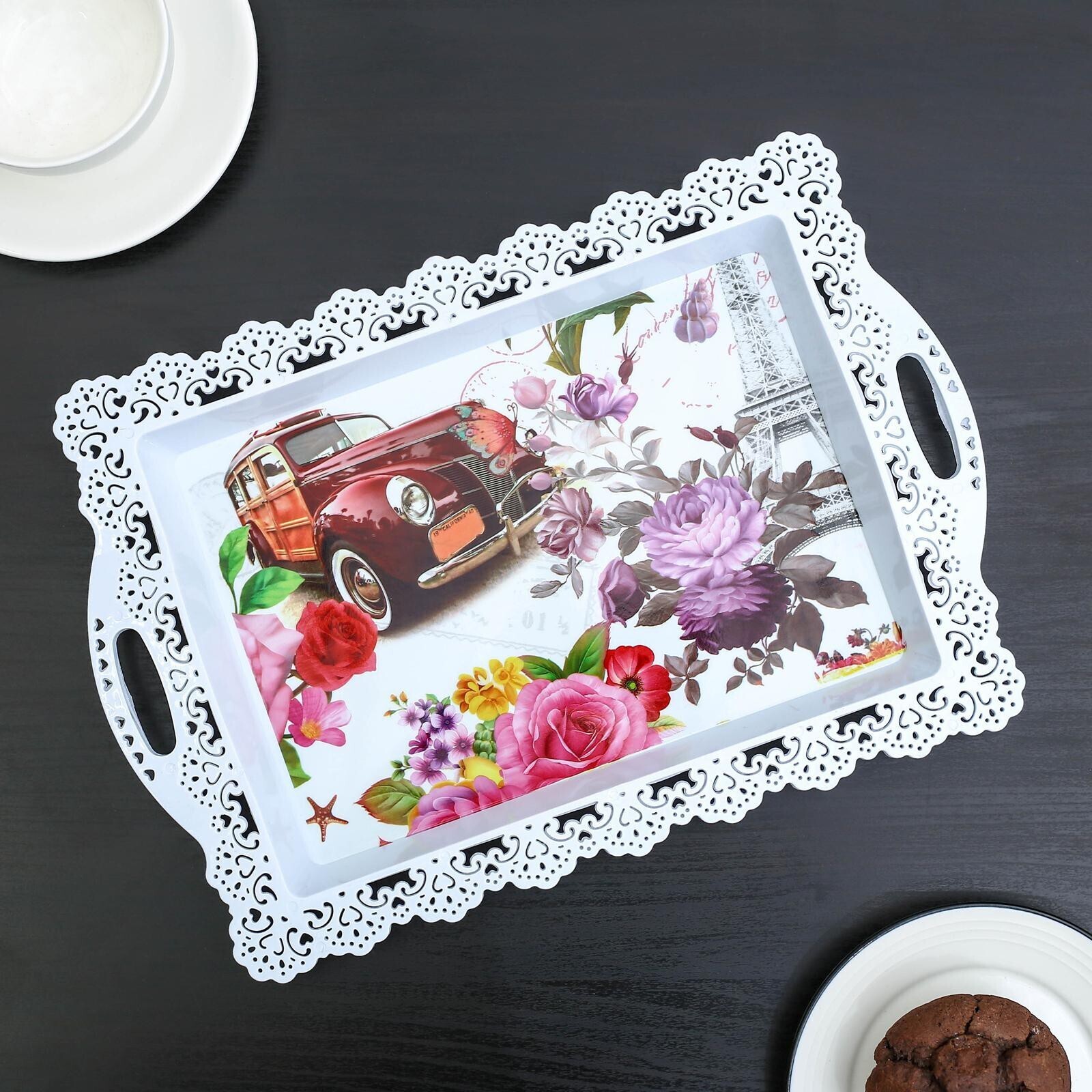 Поднос пластиковый «Ажурная кайма», 35×24 см, рисунок МИКС