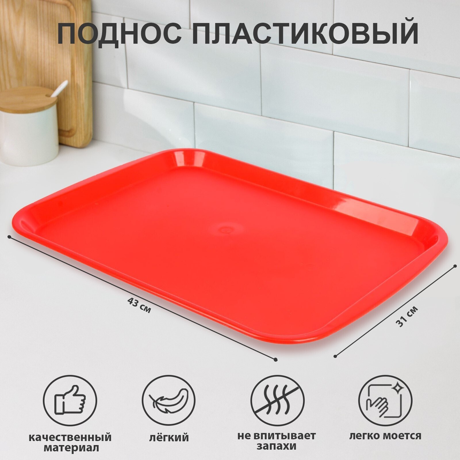 Поднос, 43х31 см, цвет МИКС