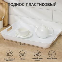 Пластиковый поднос с ручками «Рондо», 42,2×28,2×5,2 см, цвет белый - важная вещь при любой подаче пищи на стол! Вас приятно порадует: