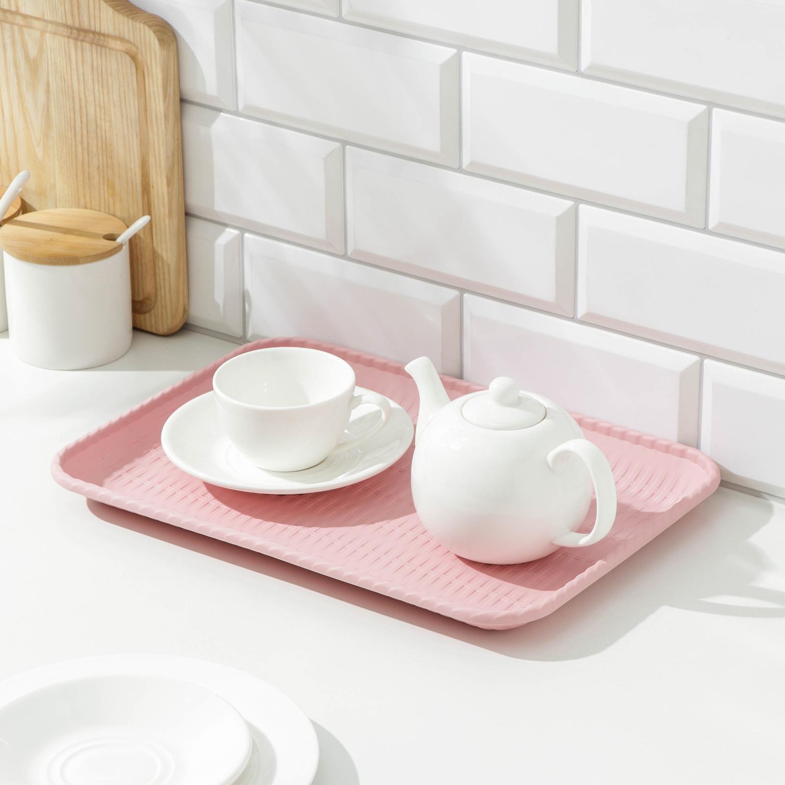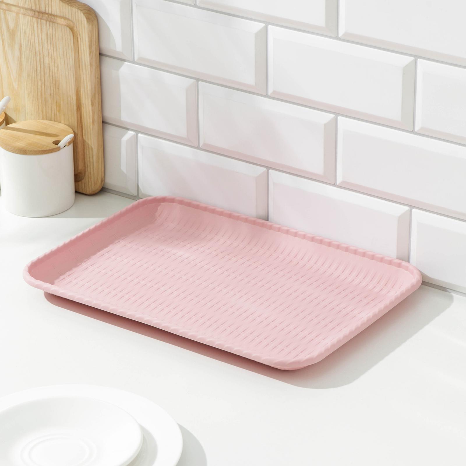 Поднос пластиковый прямоугольный «Плетение», 35×25×2,5 см, цвет МИКС