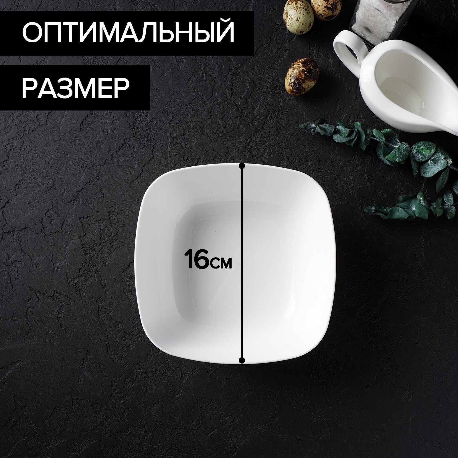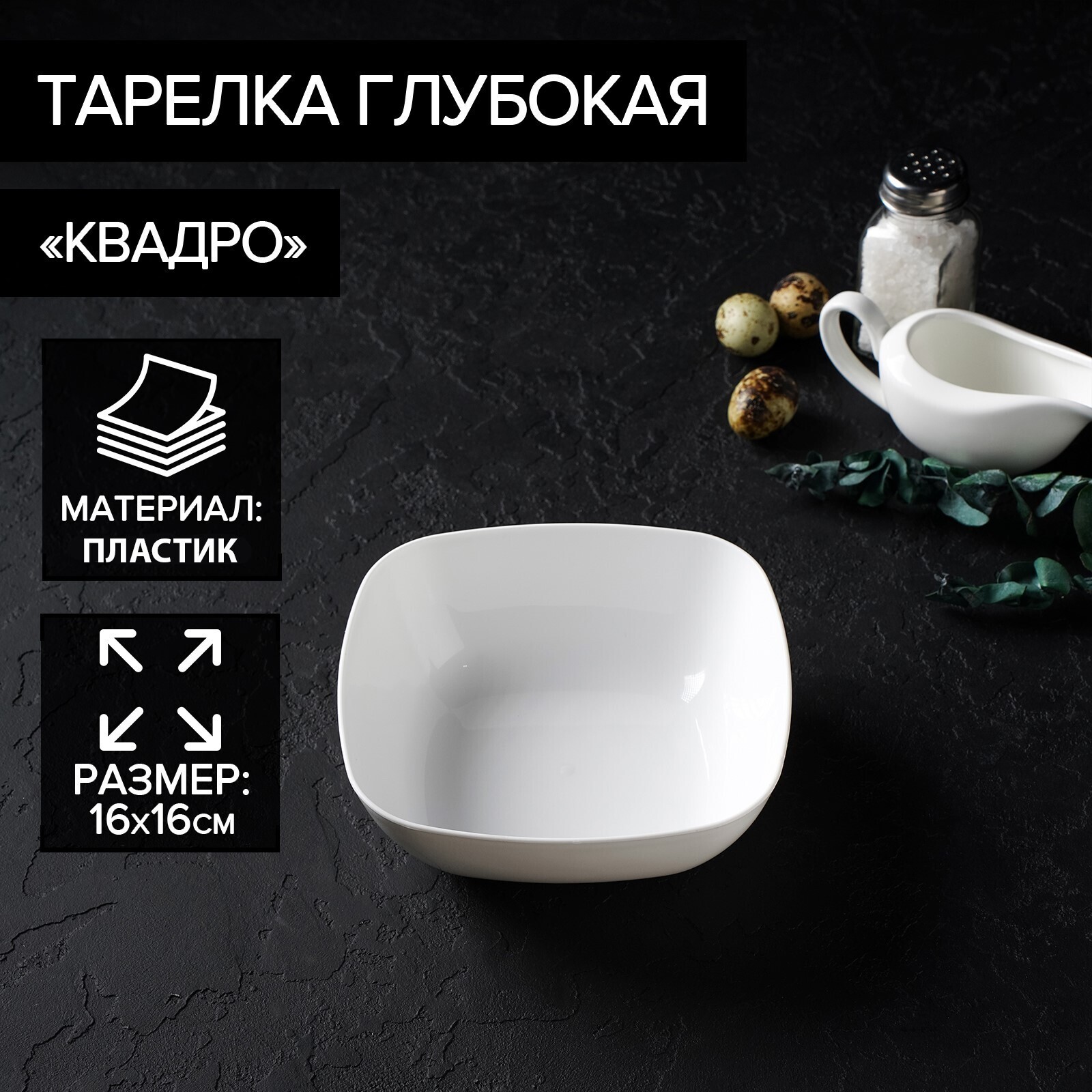 Тарелка глубокая «Квадро», 16×16 см, цвет белый